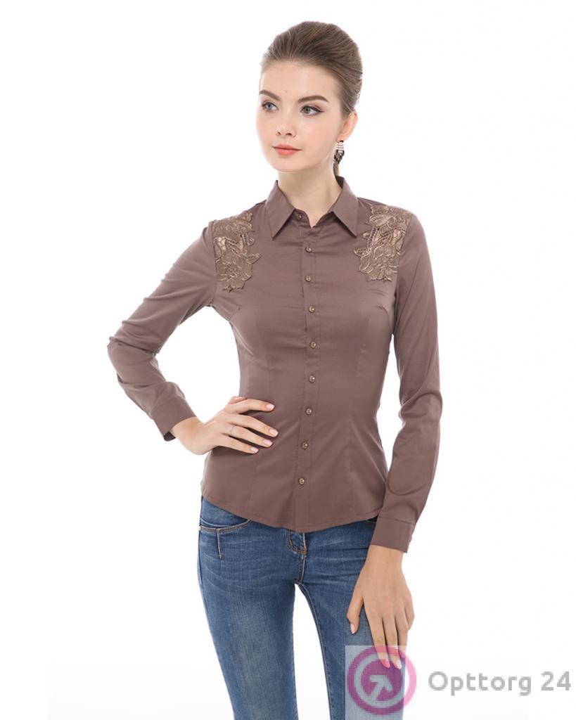 Блузка женская коричневого цвета с вышитыми аппликациями оптом