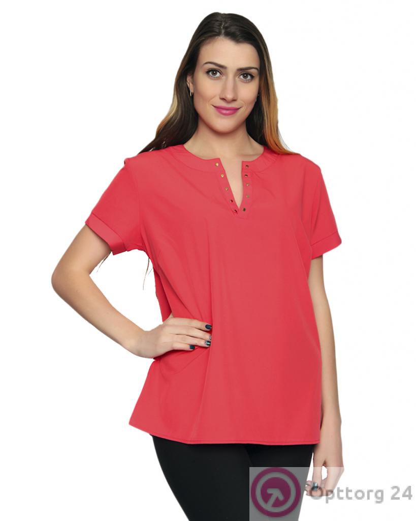Блузка женская красного цвета с вырезом оптом