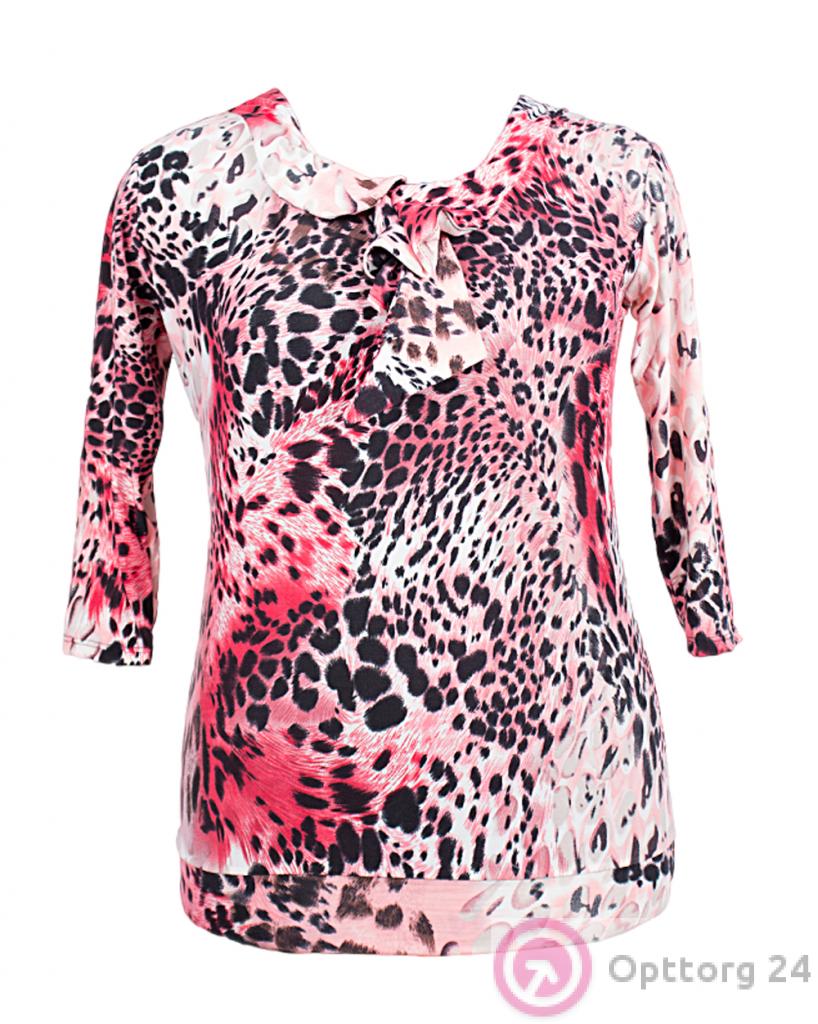 Блузка женская красного леопардового окраса, ворот с бантом оптом