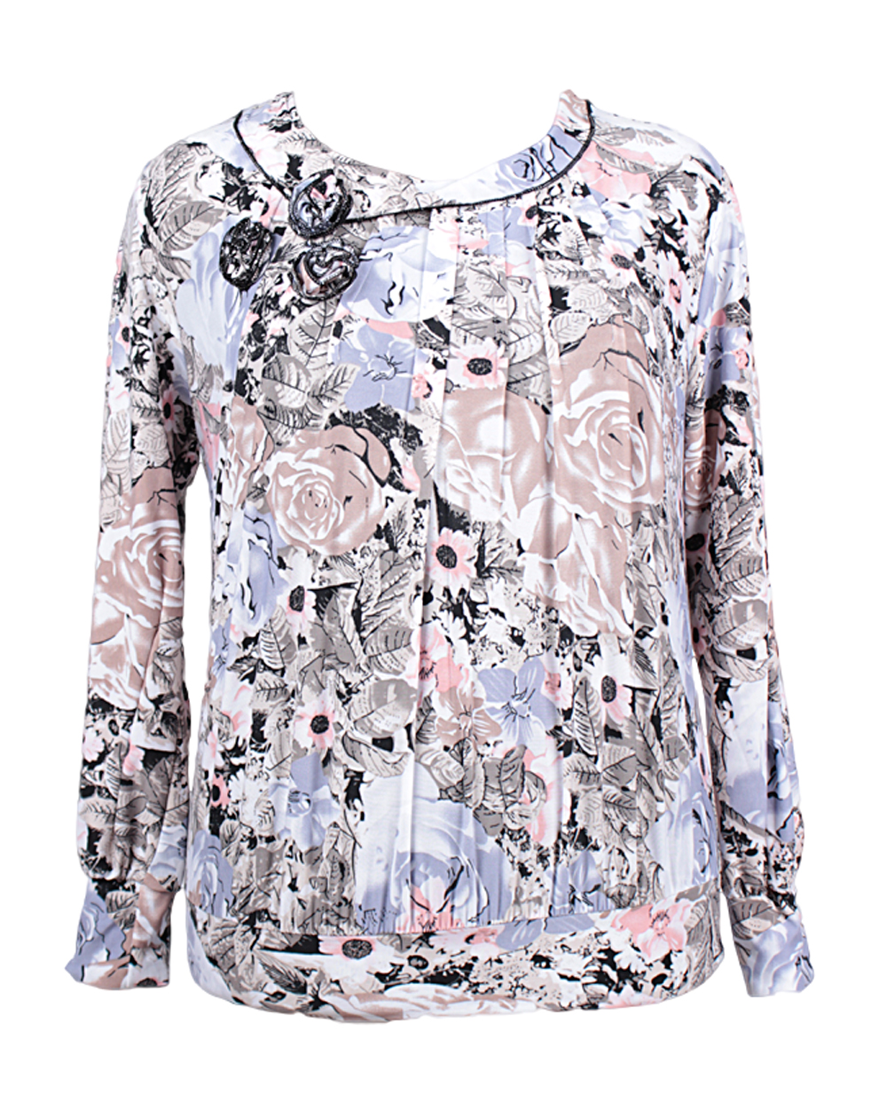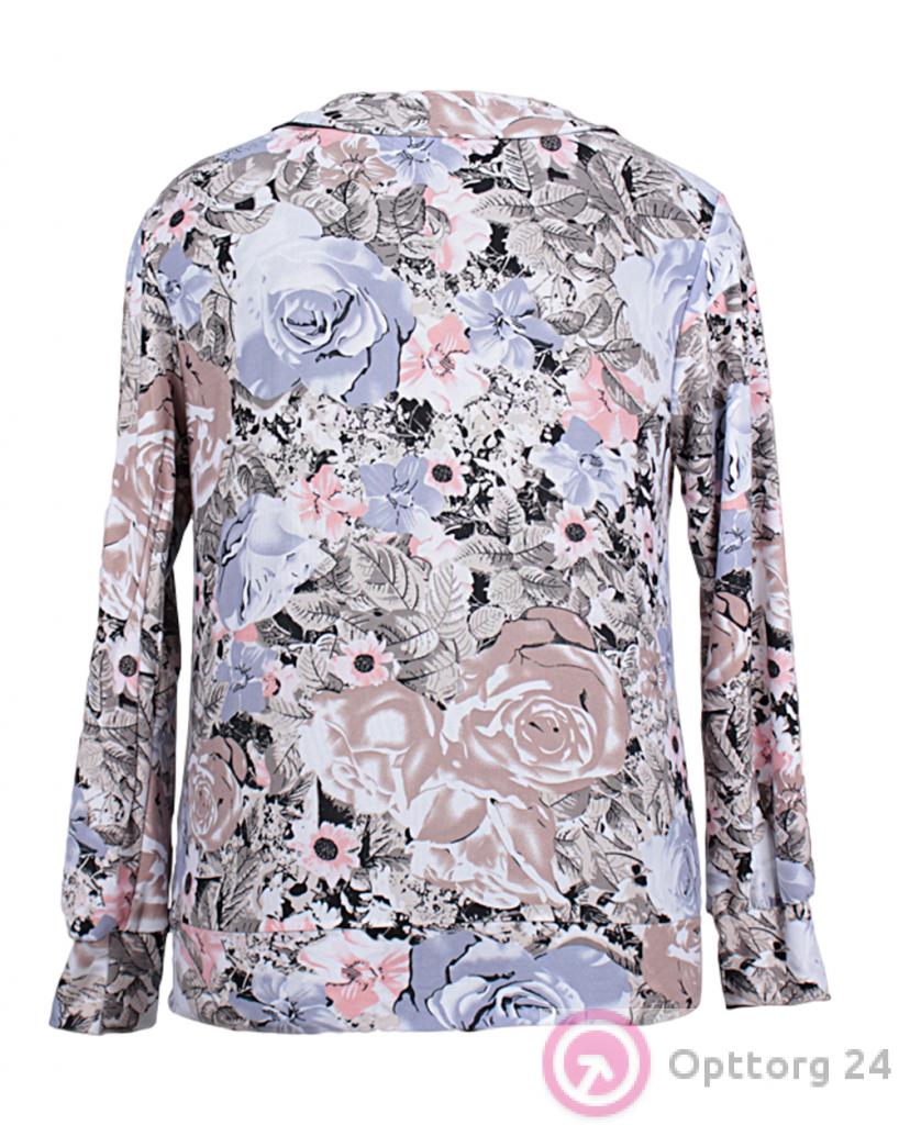 Блузка женская нежной расцветки с отделкой из матерчатых цветков оптом