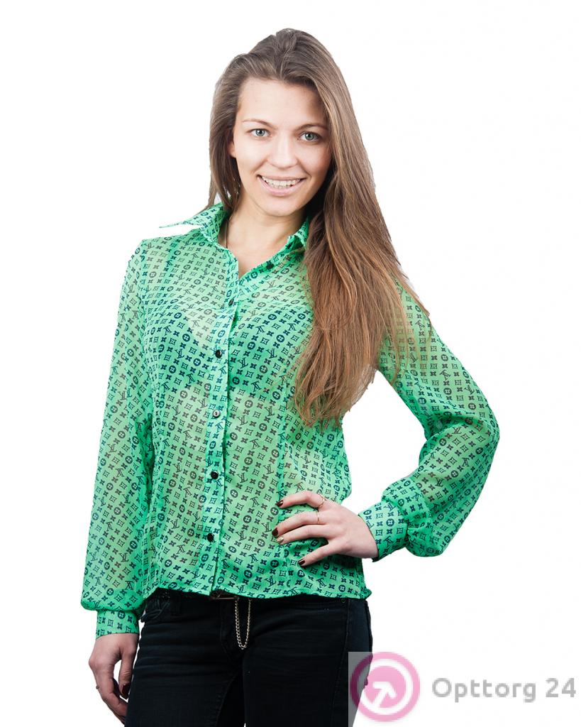 Блузка женская под шифон зеленая с узором оптом