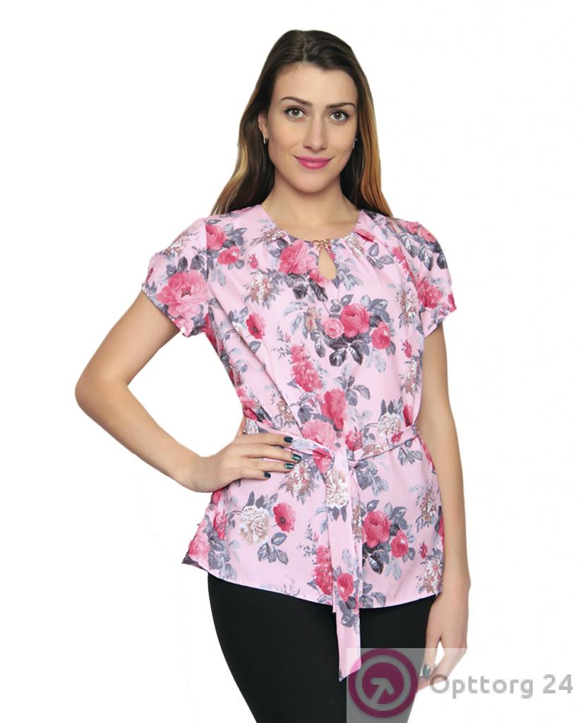 Блузка женская розовая с цветочным принтом оптом