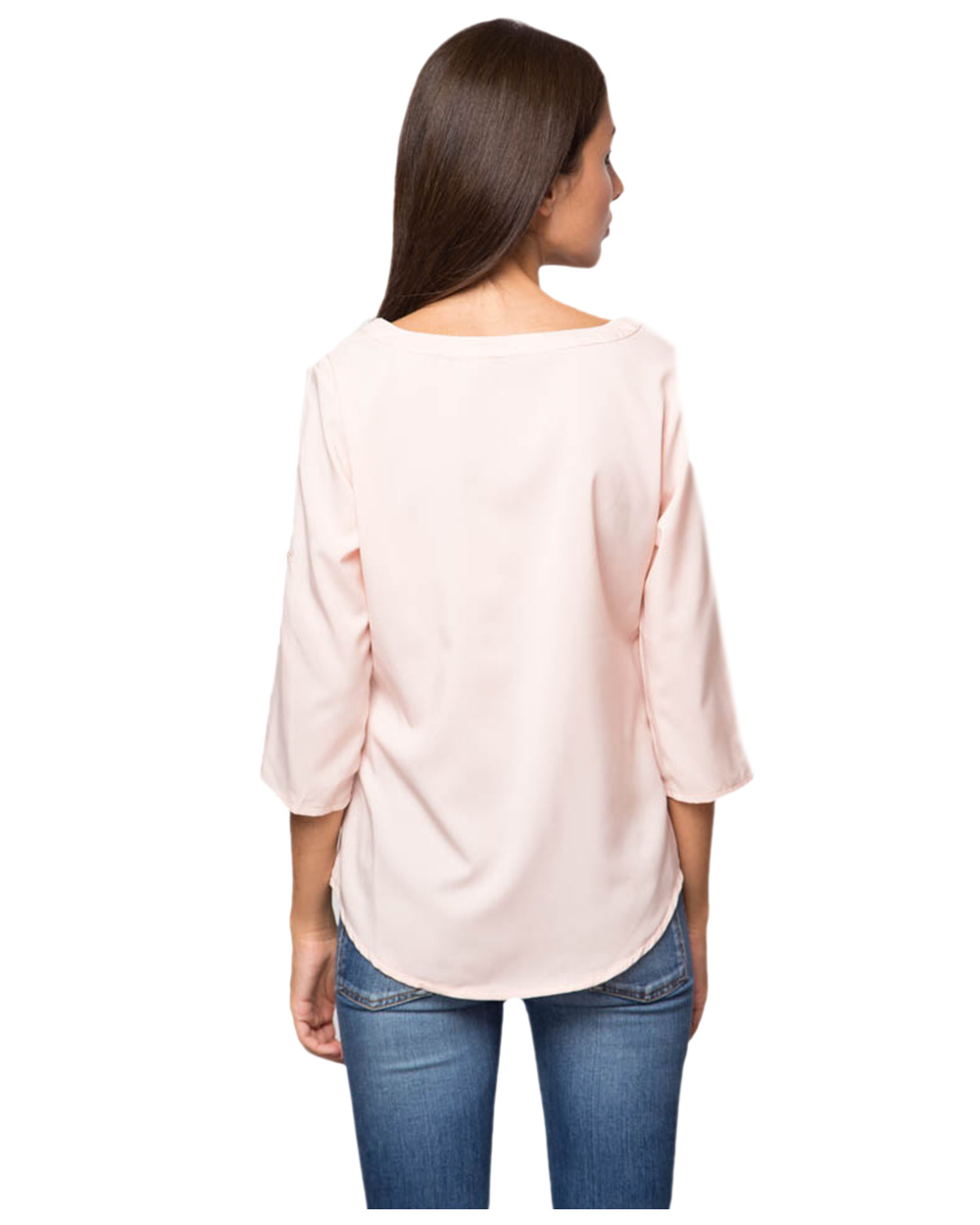 Легкая нарядная блузка прямого полуприталенного кроя. Рукава 3/4.