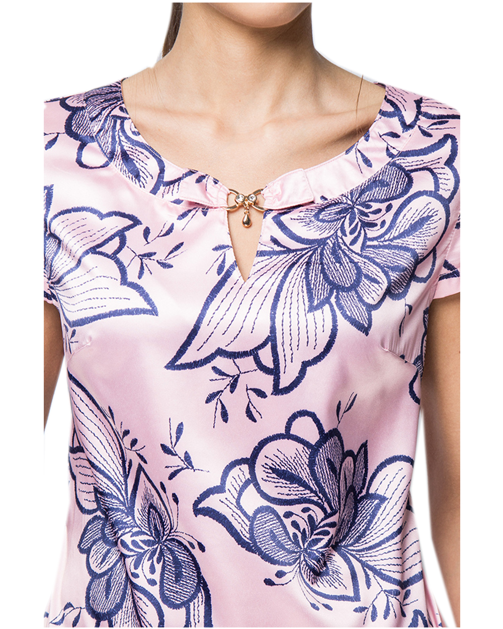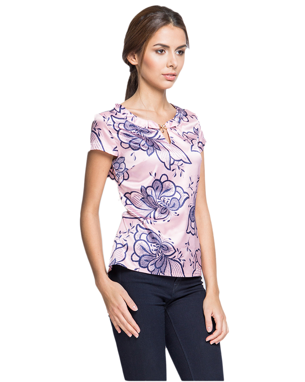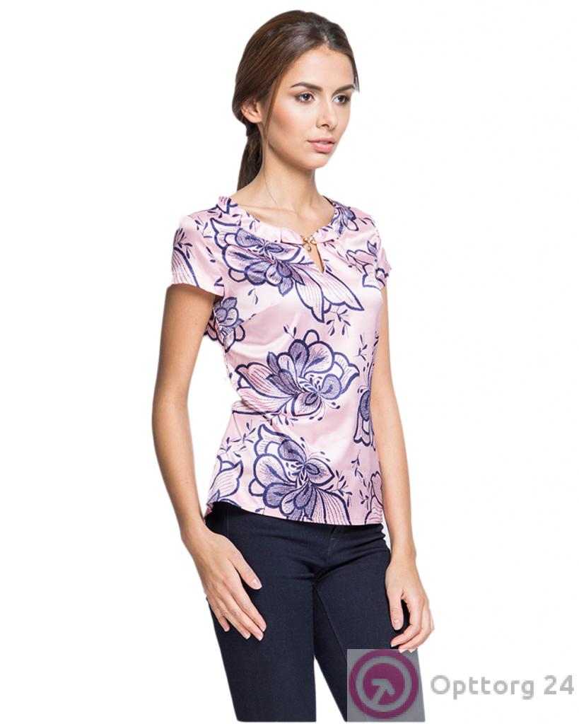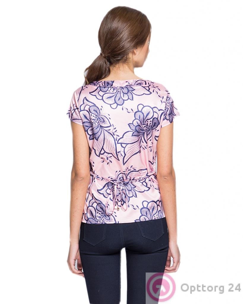 Женская блузка с округлой горловиной и вырезом-капелькой. Модель имеет полуприталенный крой. В комплекте идет тоненький пояс-шнурок.