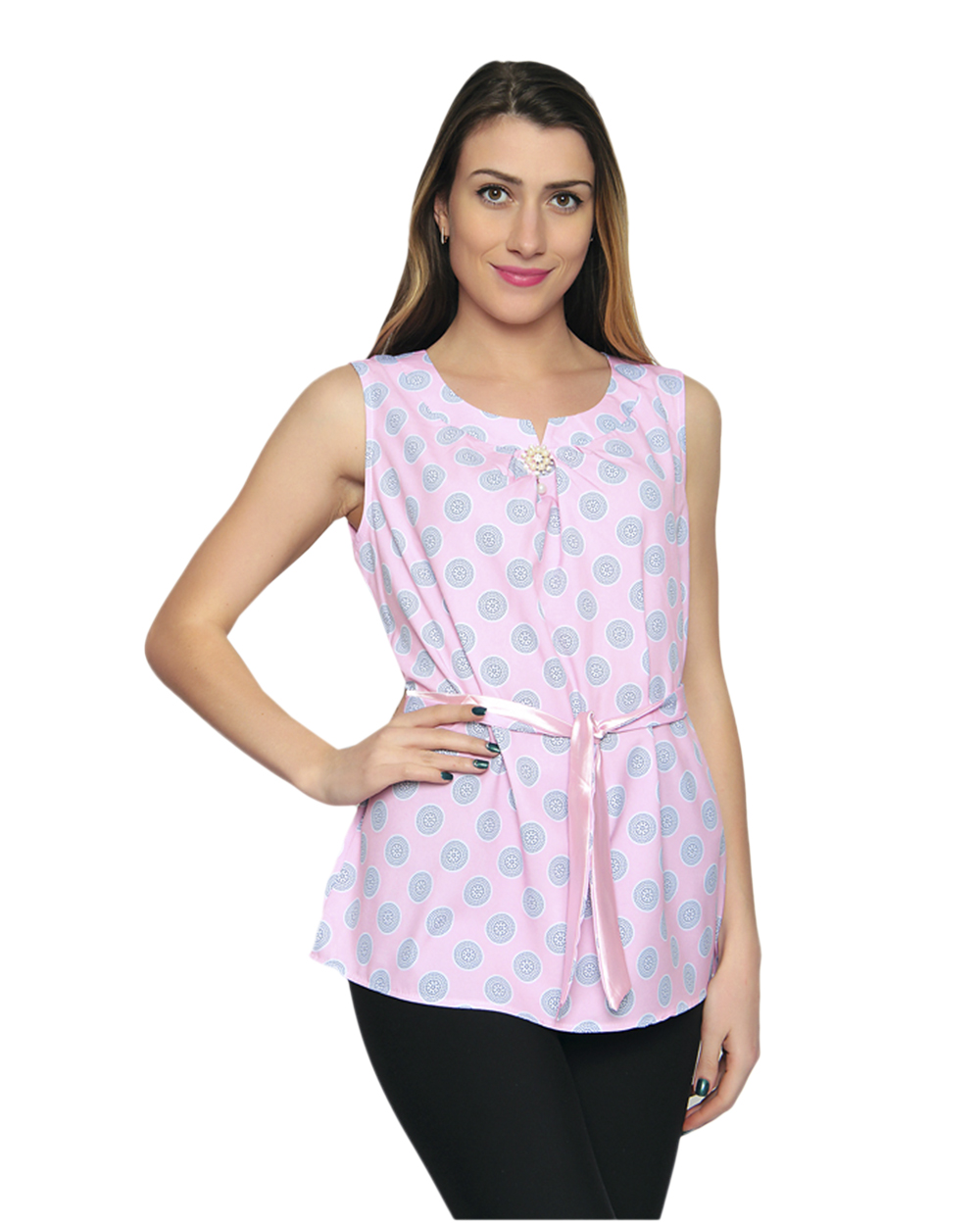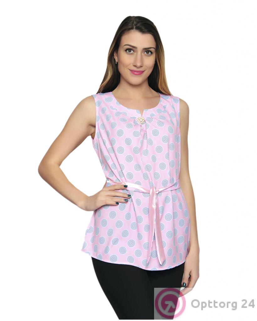 Блузка женская розового цвета с синими кругами оптом