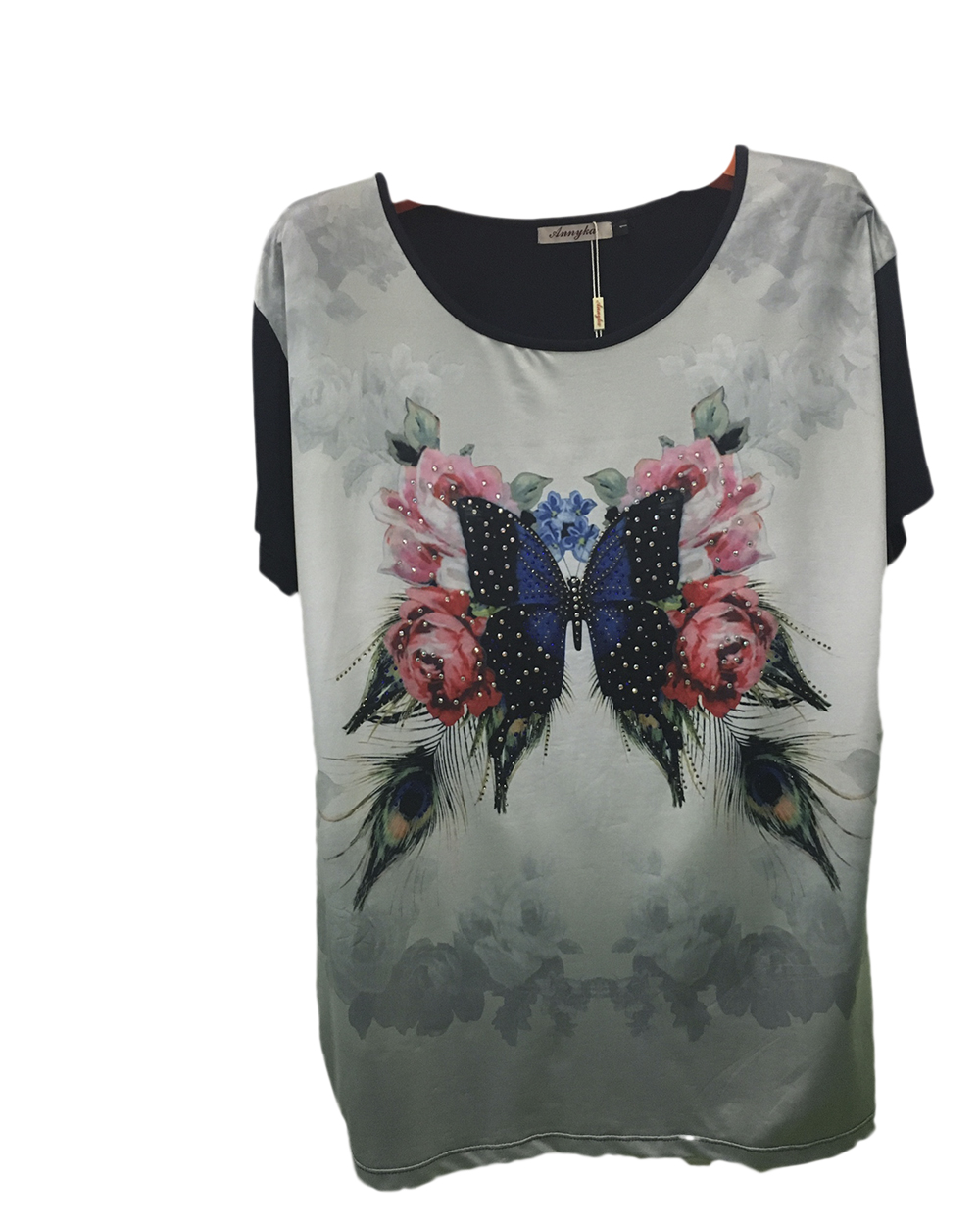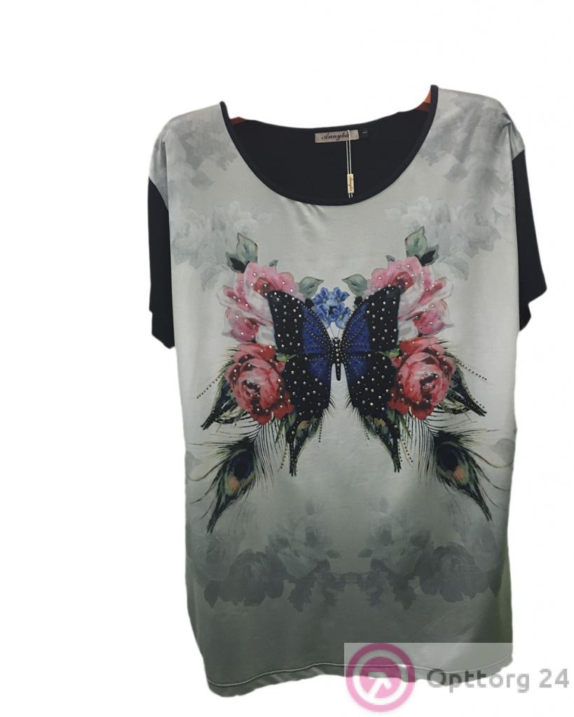 Оригинальная женская блузка с короткими рукавами. Неглубокая горловина, свободный крой.