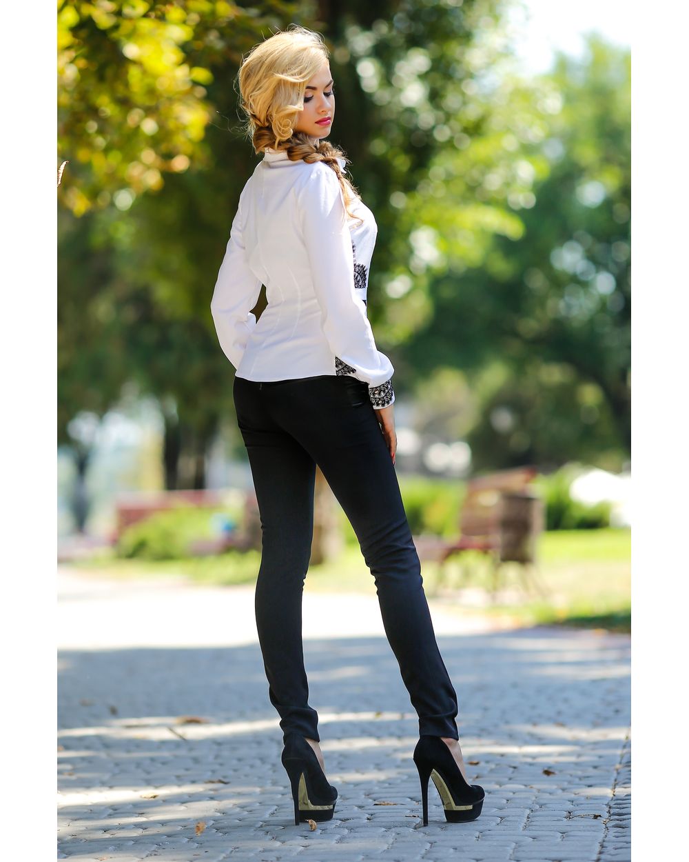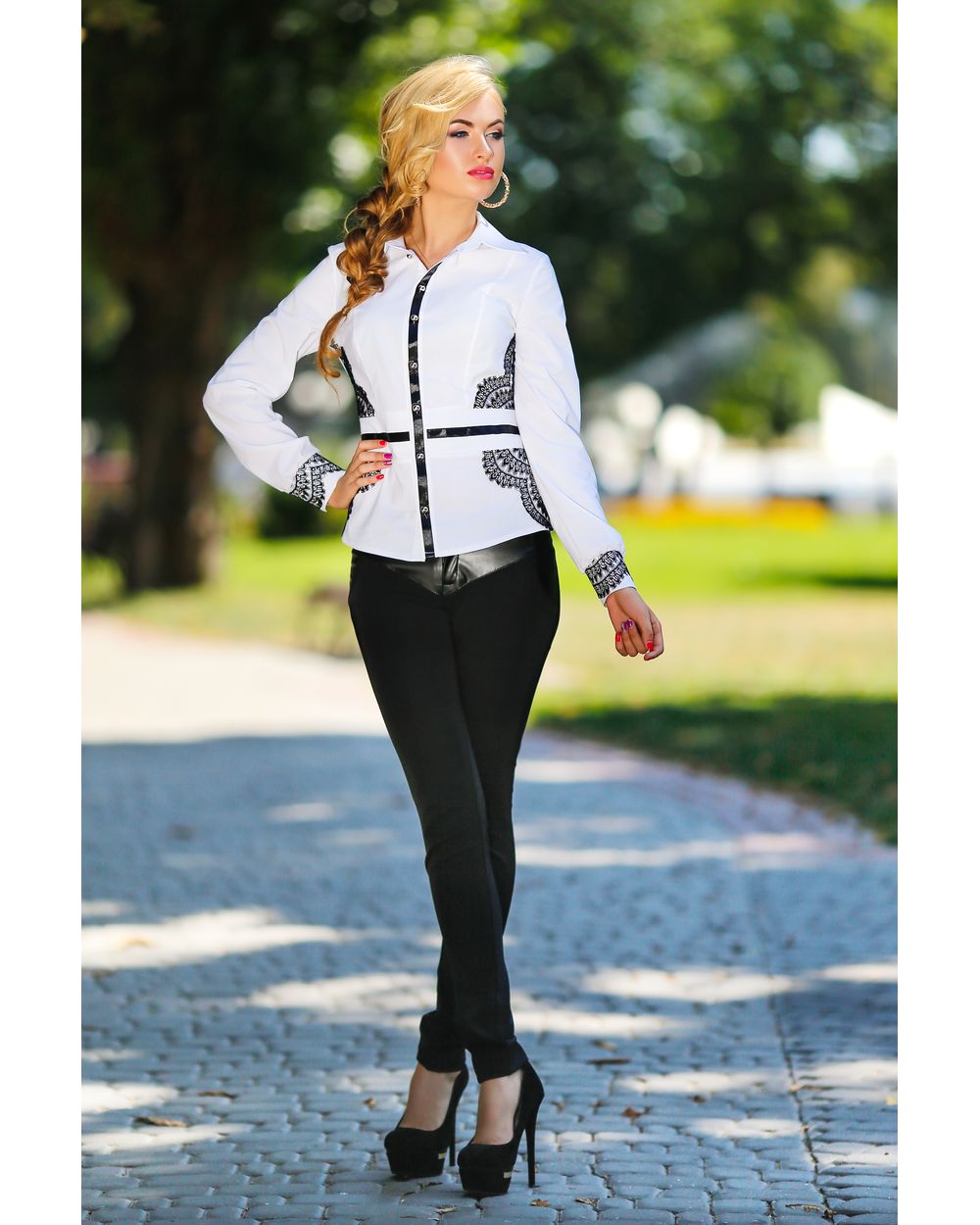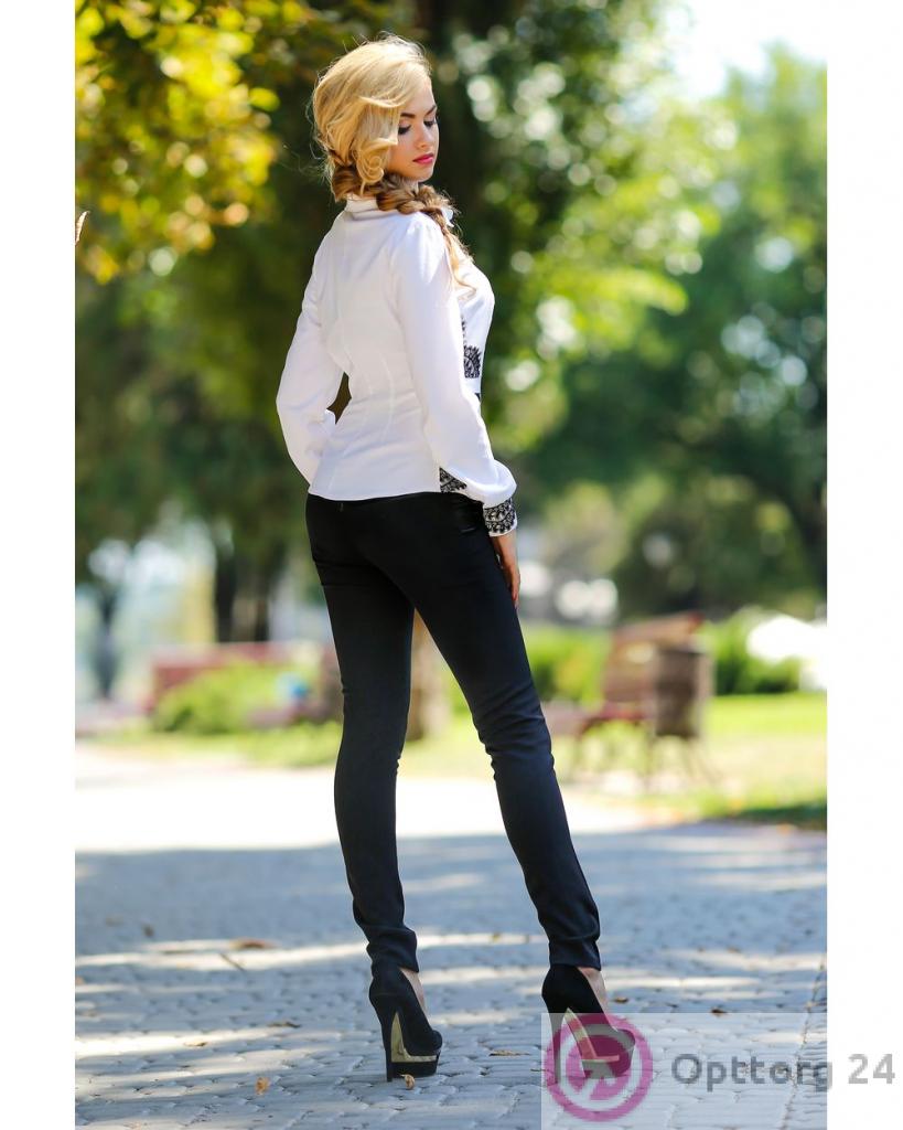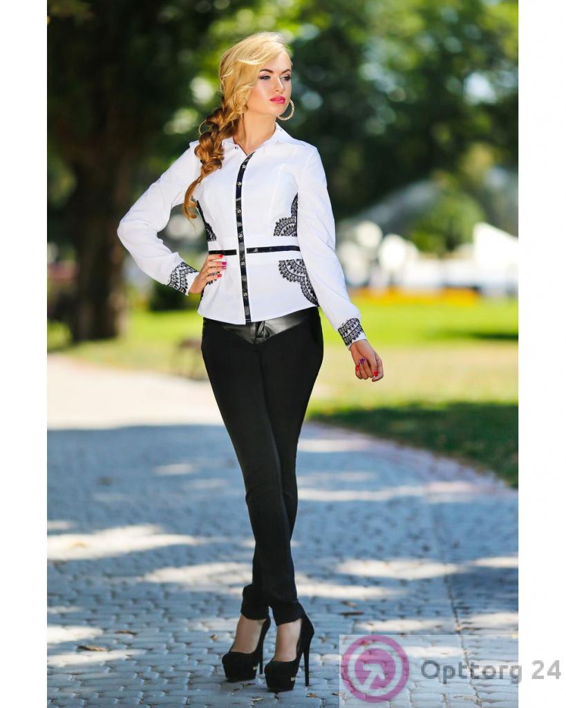 Блузка женская с чёрными кружевными вставками белая оптом