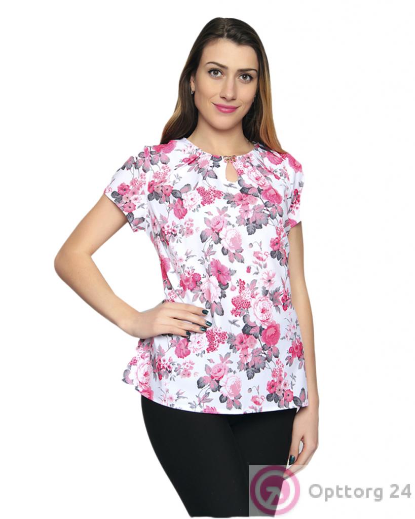 Модель с короткими рукавами. Изделие имеет спереди небольшой разрез-капельку.