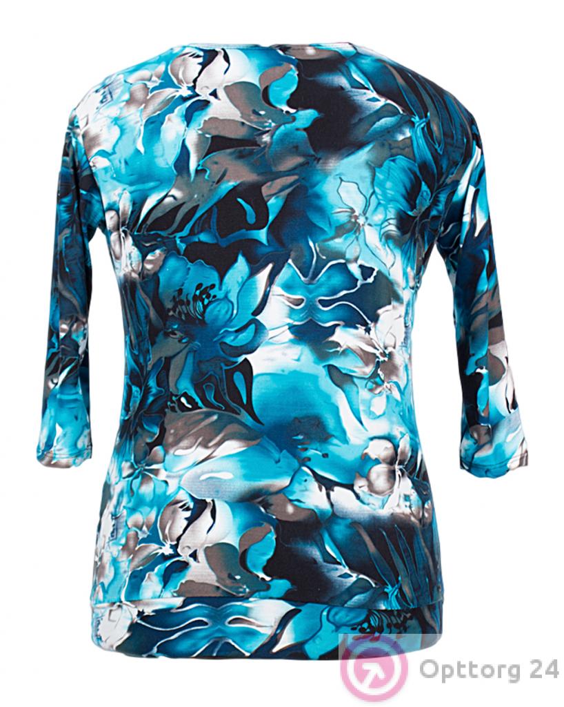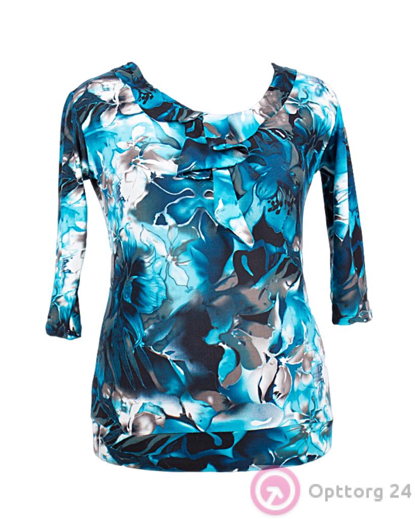 Блузка женская с цветочным принтом голубого оттенка оптом