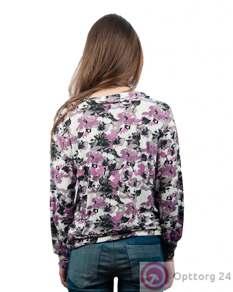 Блузка женская с декором на резинке черно-розовая с цветами оптом