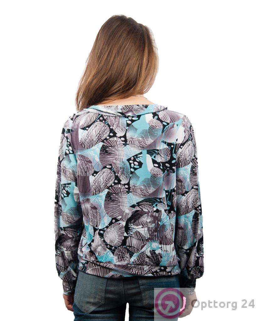 Блузка женская с декором на резинке голубая с кофейными листьями оптом