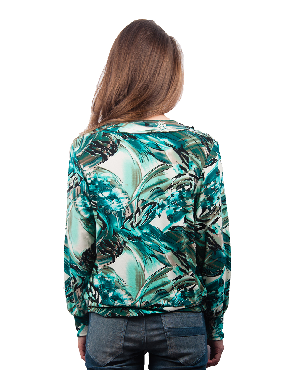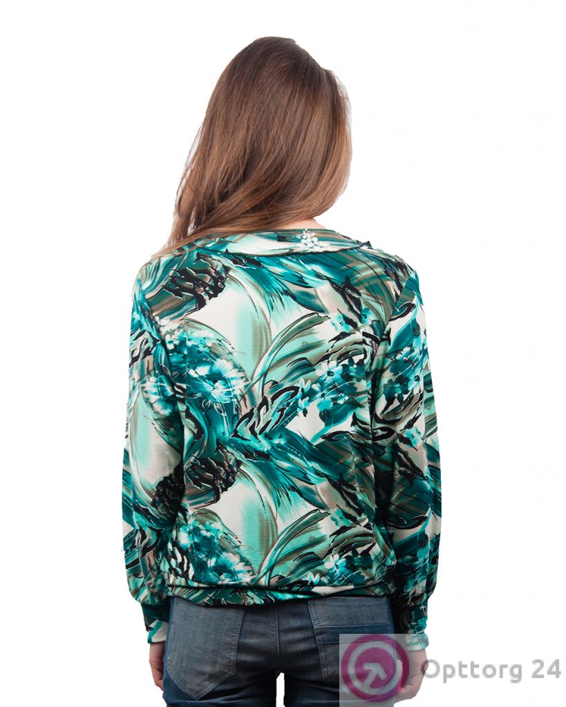 Блузка женская с декором на резинке изумрудная с разводами оптом