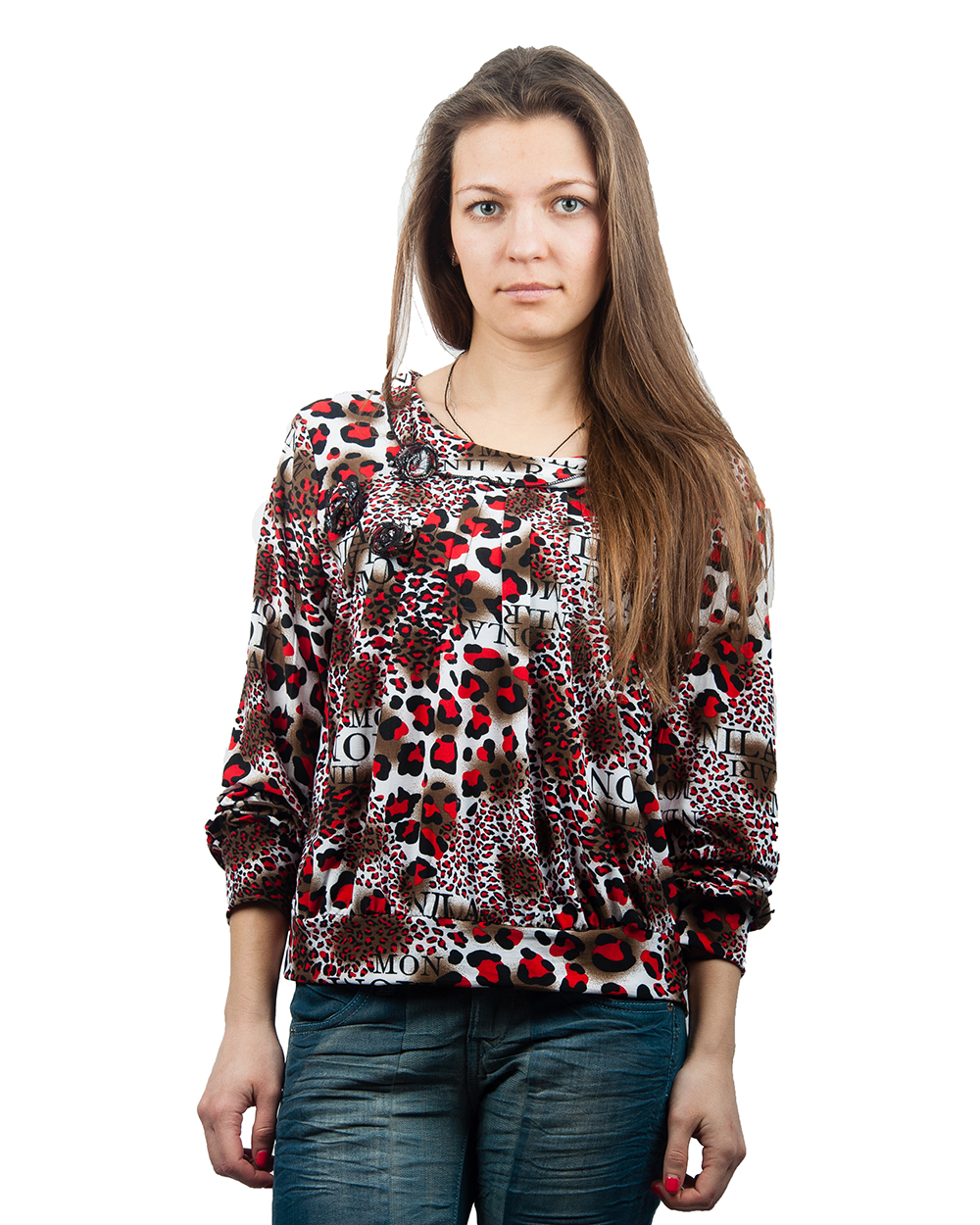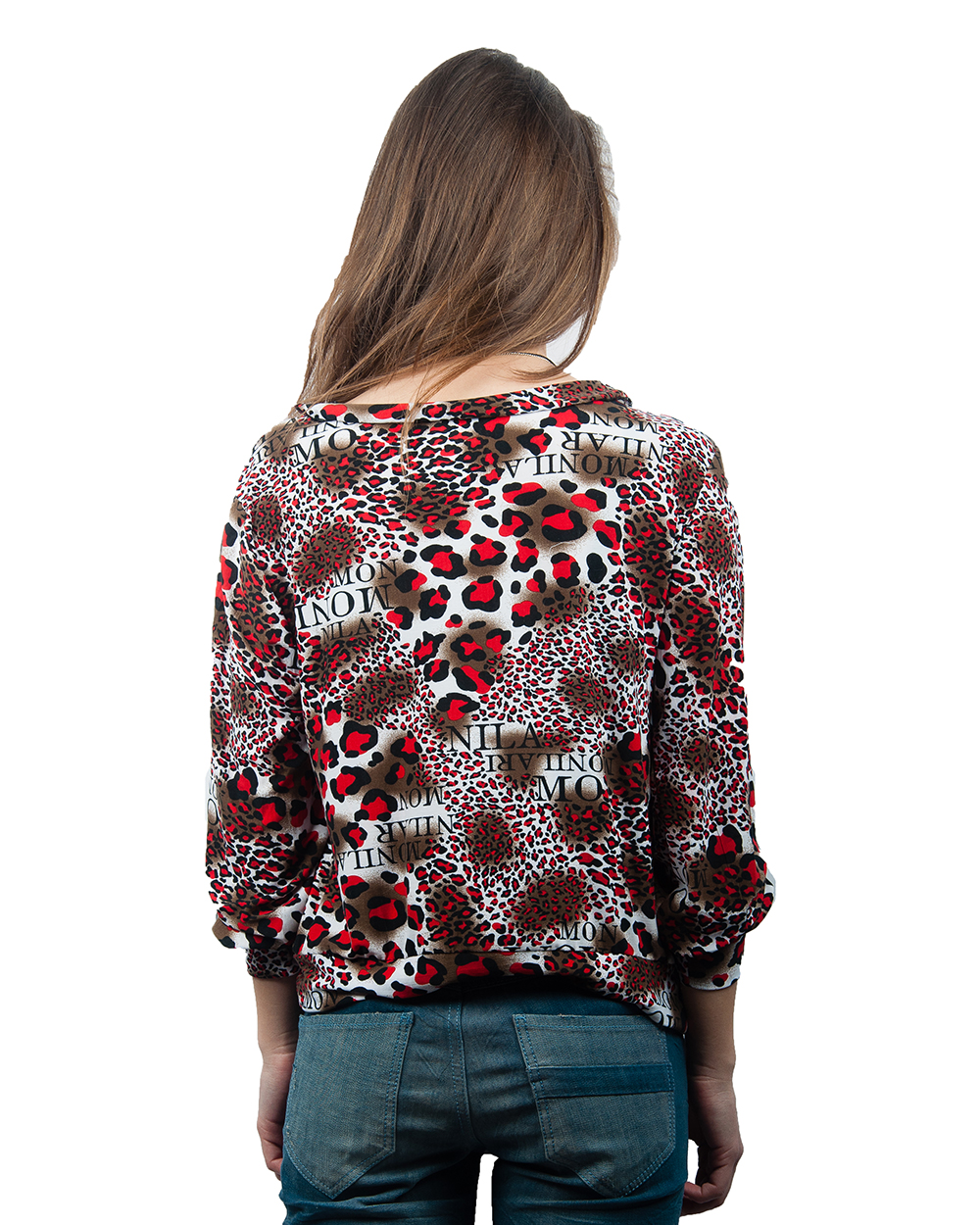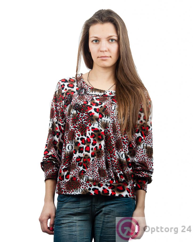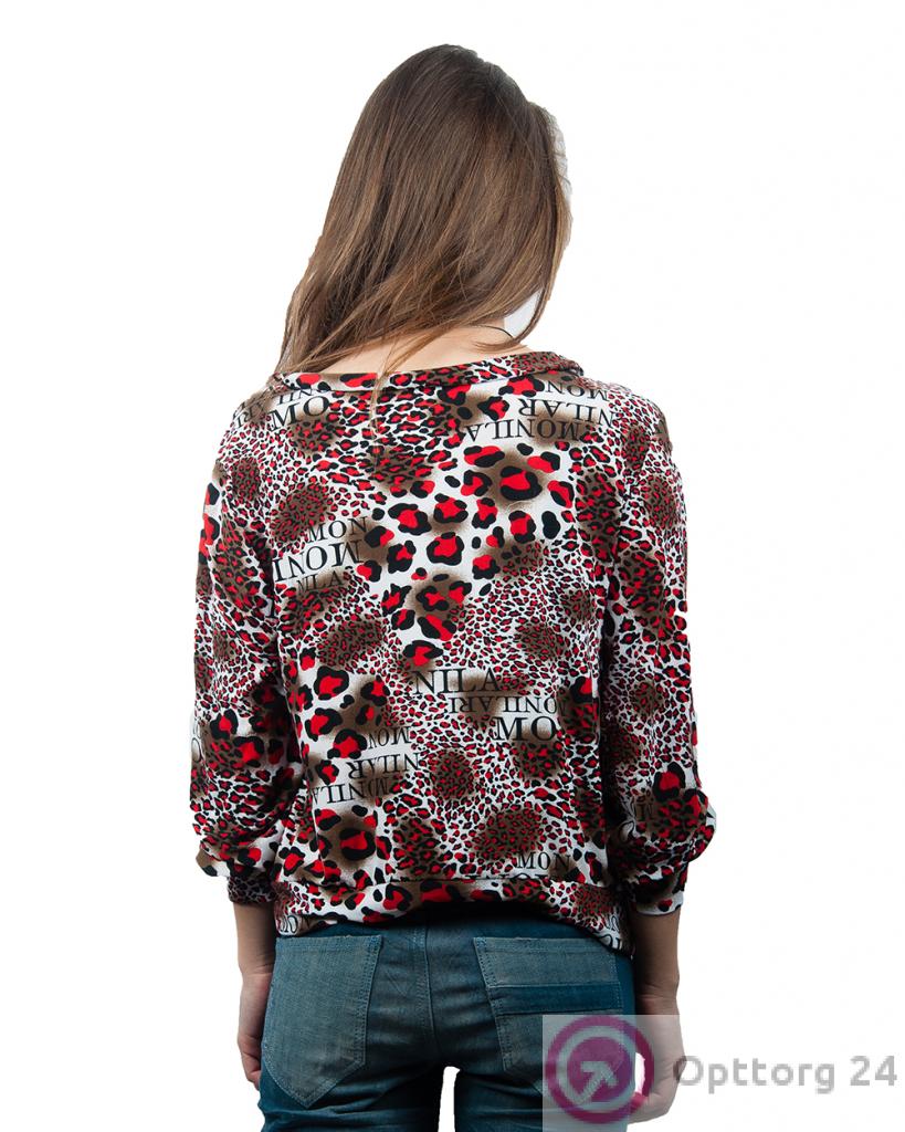 Блузка женская с декором на резинке красная с леопардовым принтом оптом