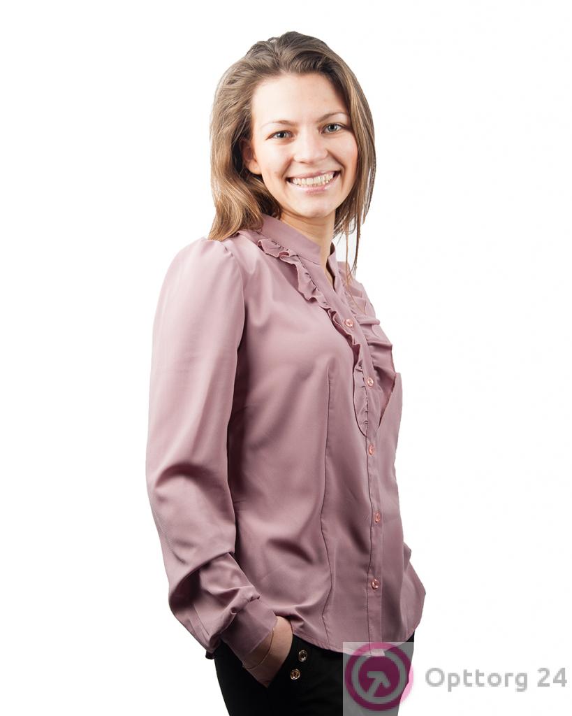 Блузка женская с рюшью под шифон светло-розовая оптом
