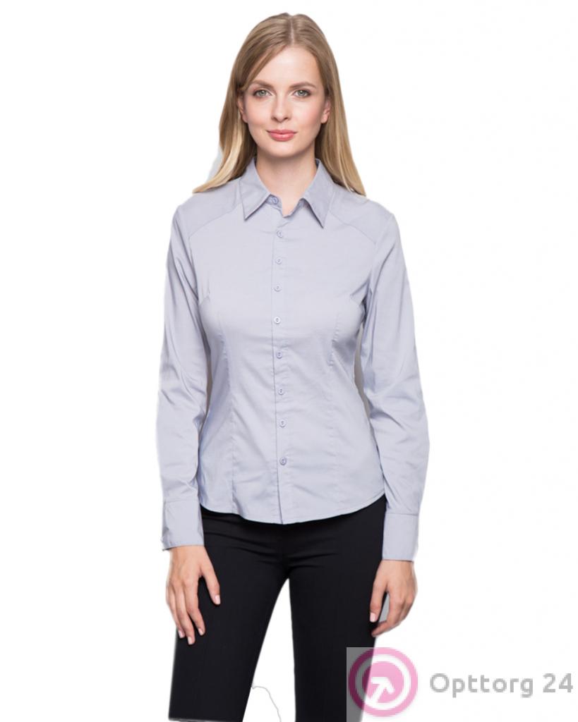 Легкая приталенная блузка с длинными рукавами. Модель имеет отложной воротник и застегивается на пуговицы.