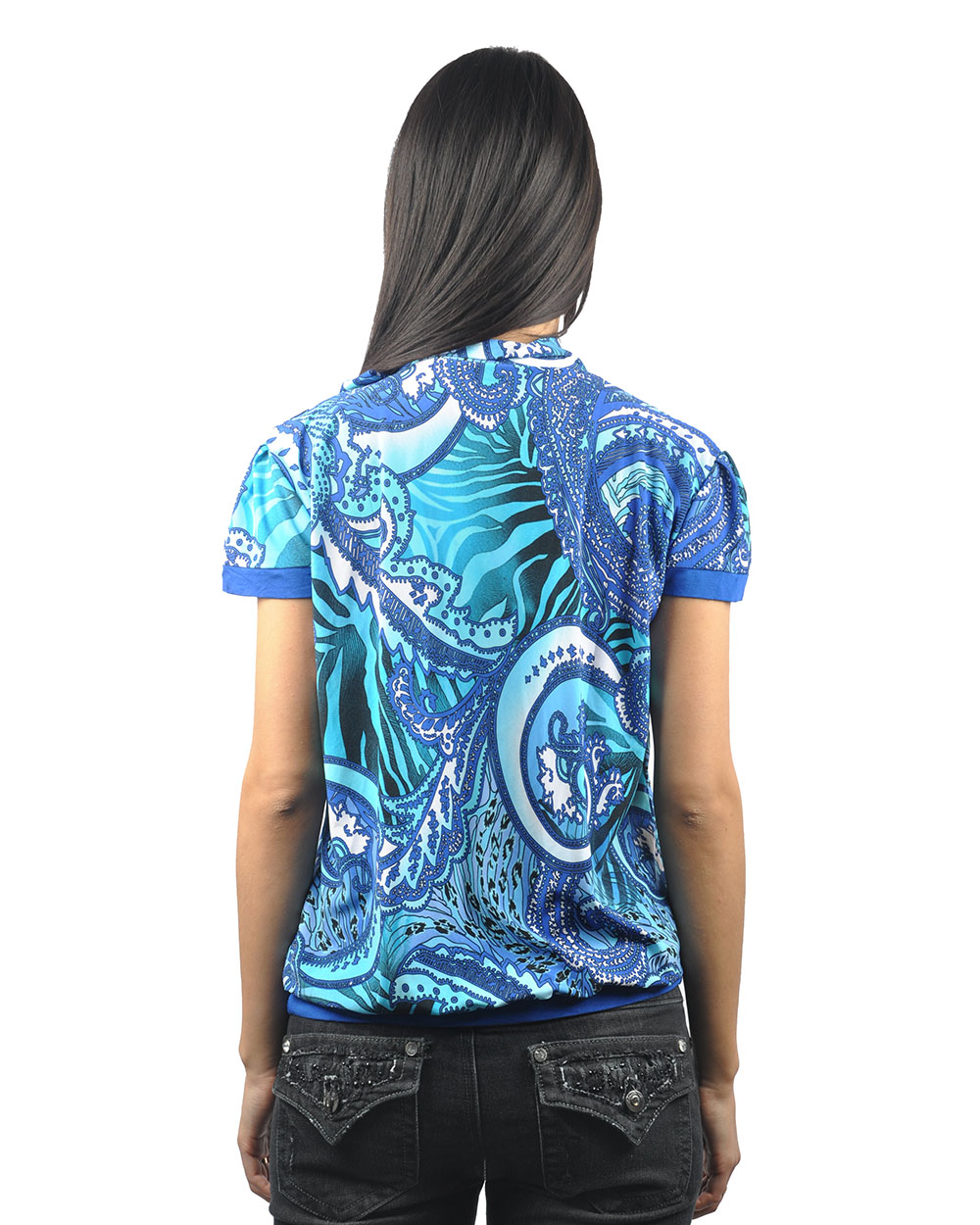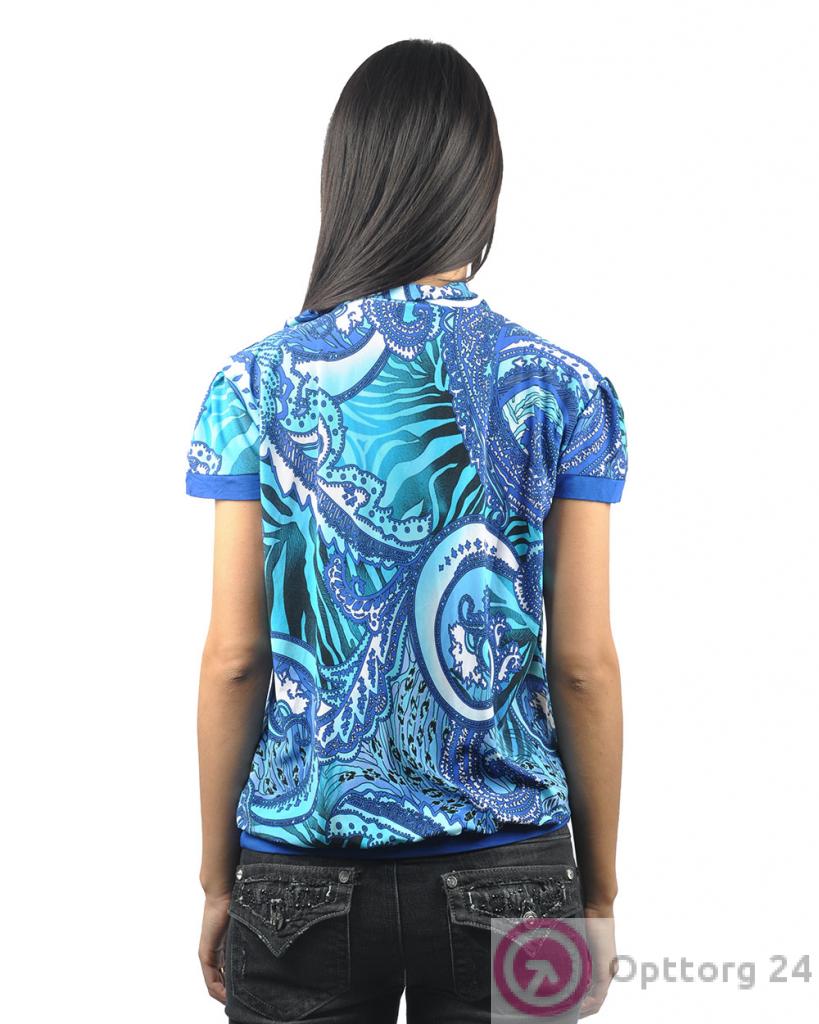 Блузка женская сине-голубая с абстрактным принтом оптом
