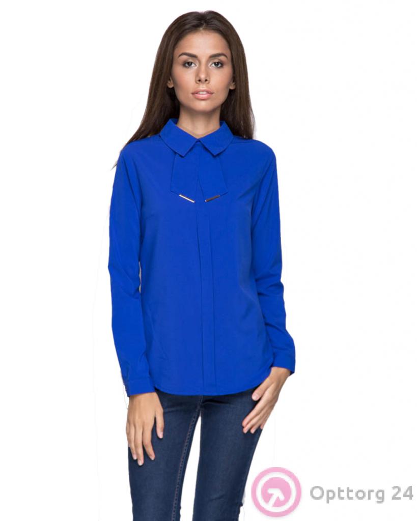 Женская блузка сирего цвета с застежкой на пуговицы спереди. Модель имет длинные рукава и дополнена бантом на воротнике.