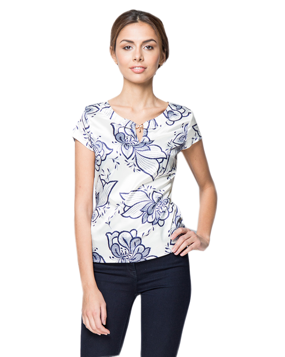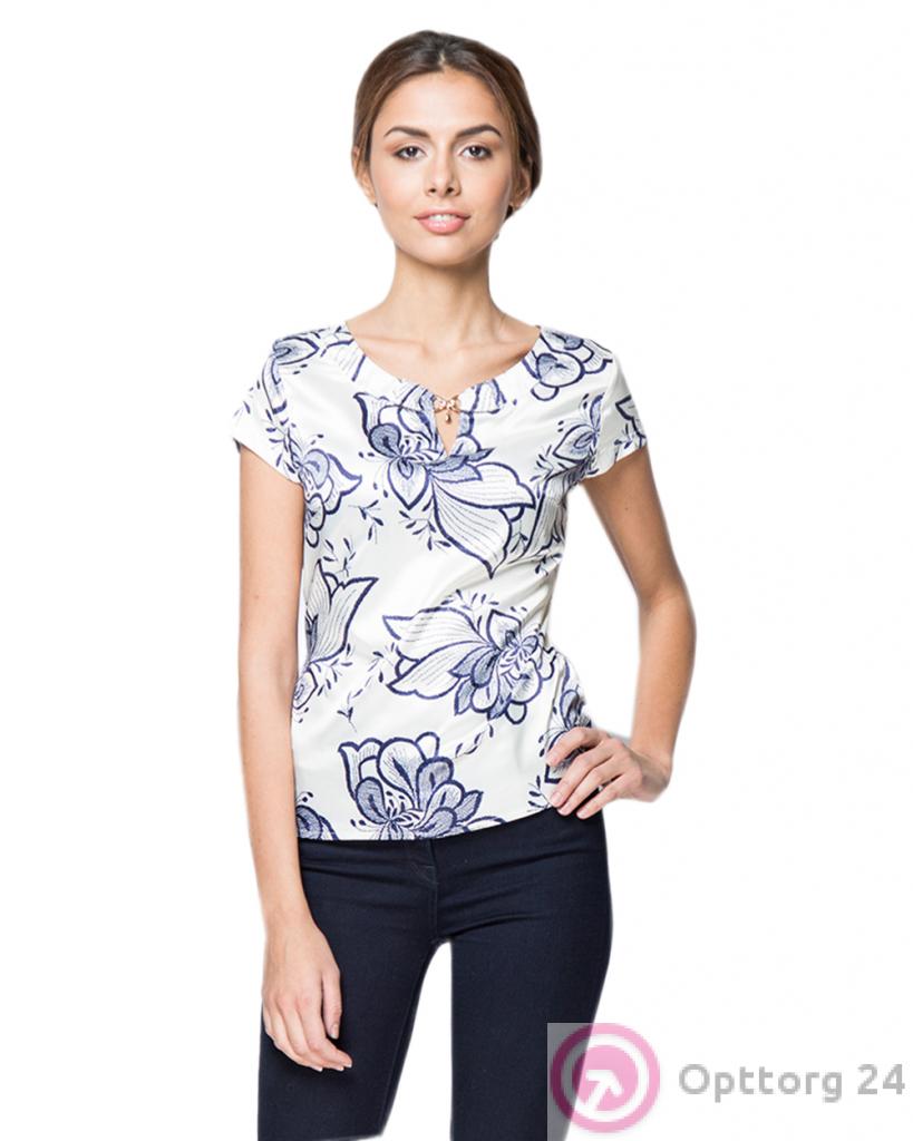Модная женская блуза с короткими рукавами и округлой горловиной. Приталенный крой.