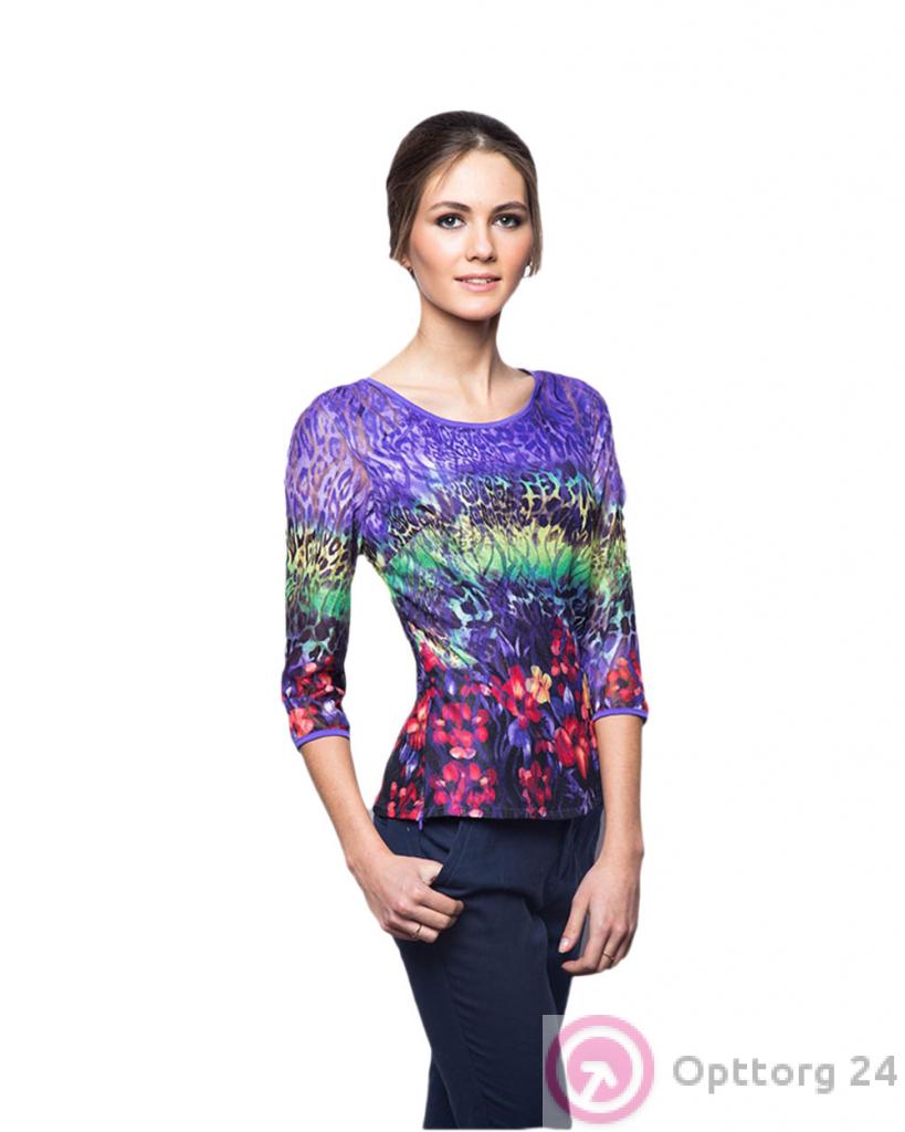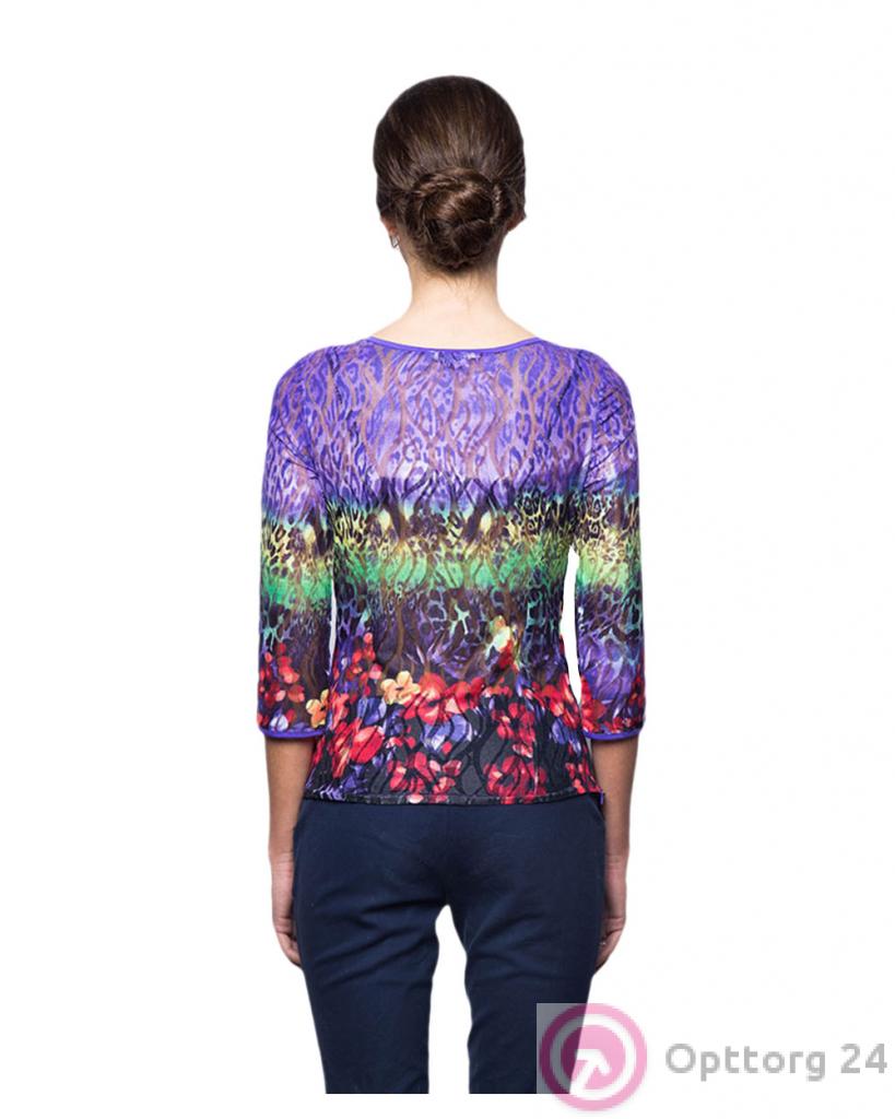 Блузка женская сиреневая с цветастым принтом оптом