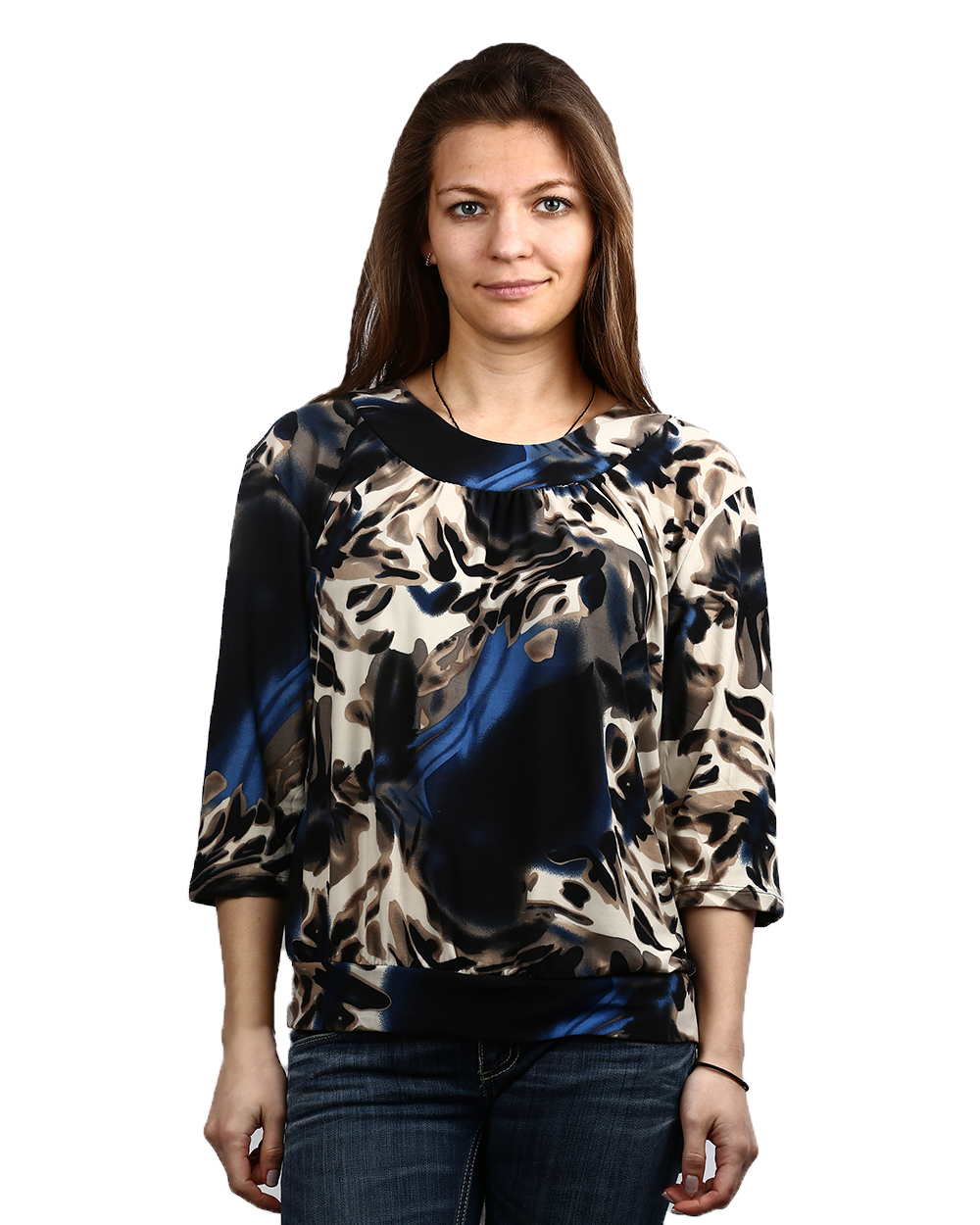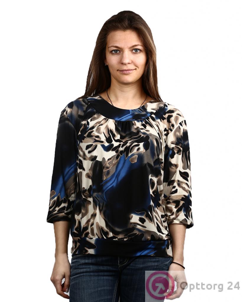 Блузка женская темно-синяя с абстрактным принтом оптом