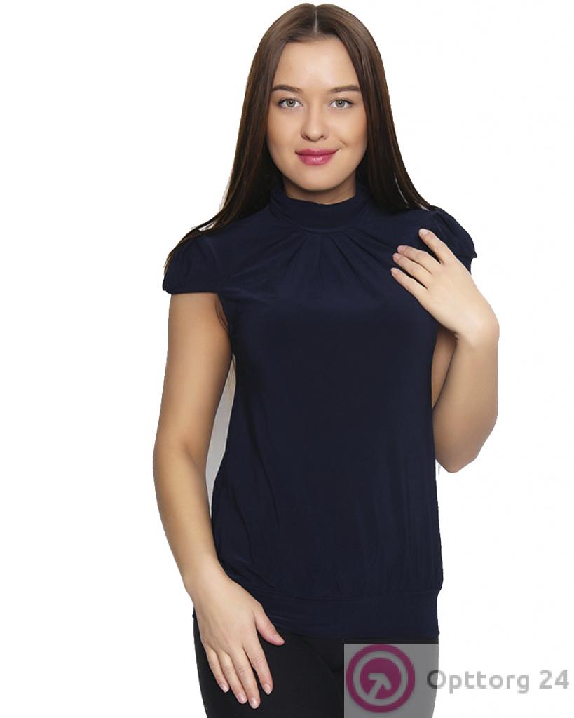 Блузка женская тёмно синего цвета с коротким рукавом. оптом