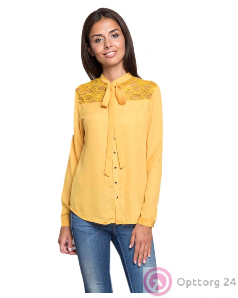 Блузка женская желтая с кружевной вставкой оптом