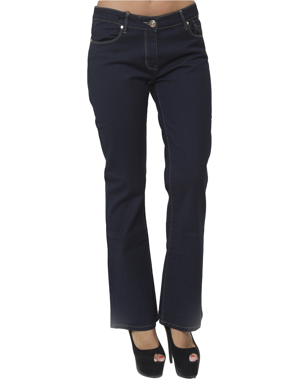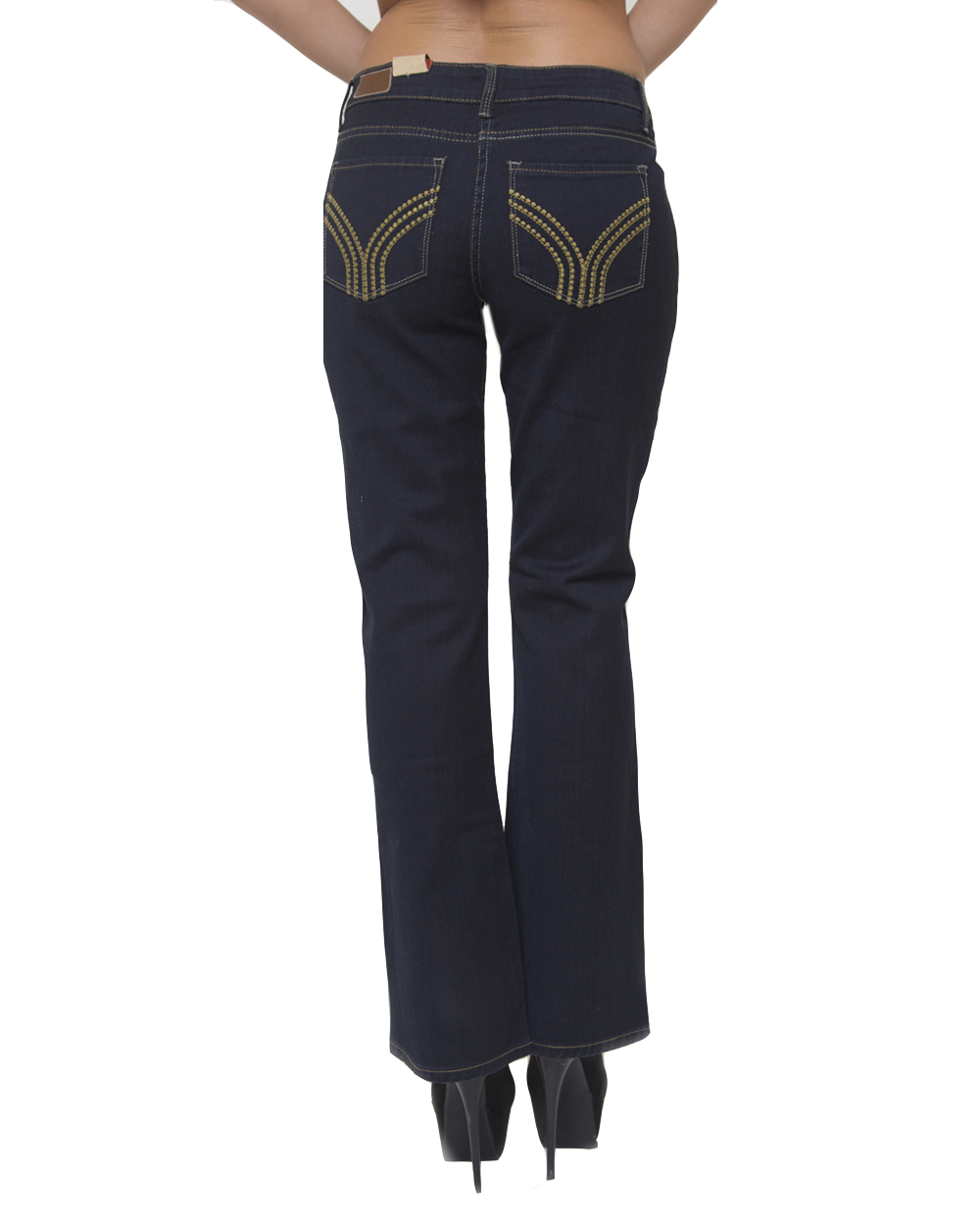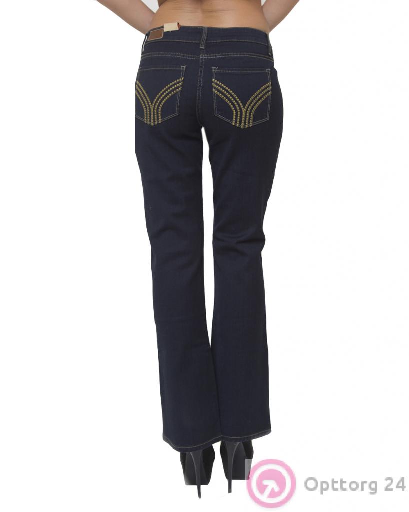 Лаконичная слегка раскрешенная модель женский джинсов. Все швы прошиты контрастной нитью, пояс со шлейками.