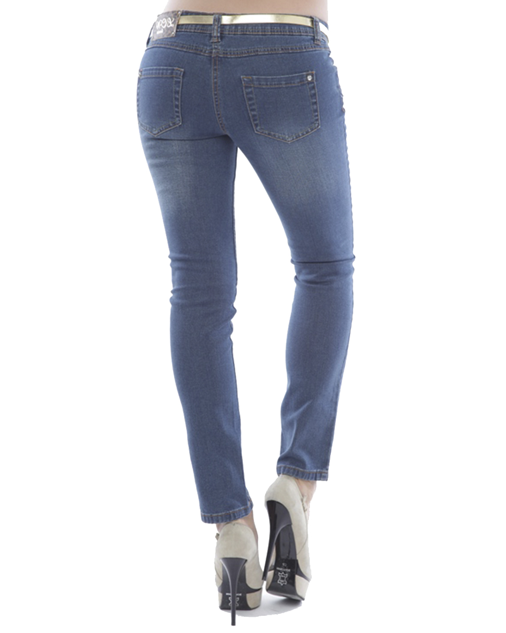 Стильная модель ждинсов зауженная книзу. Спереди два прорезных кармана, а сзади два накладных.