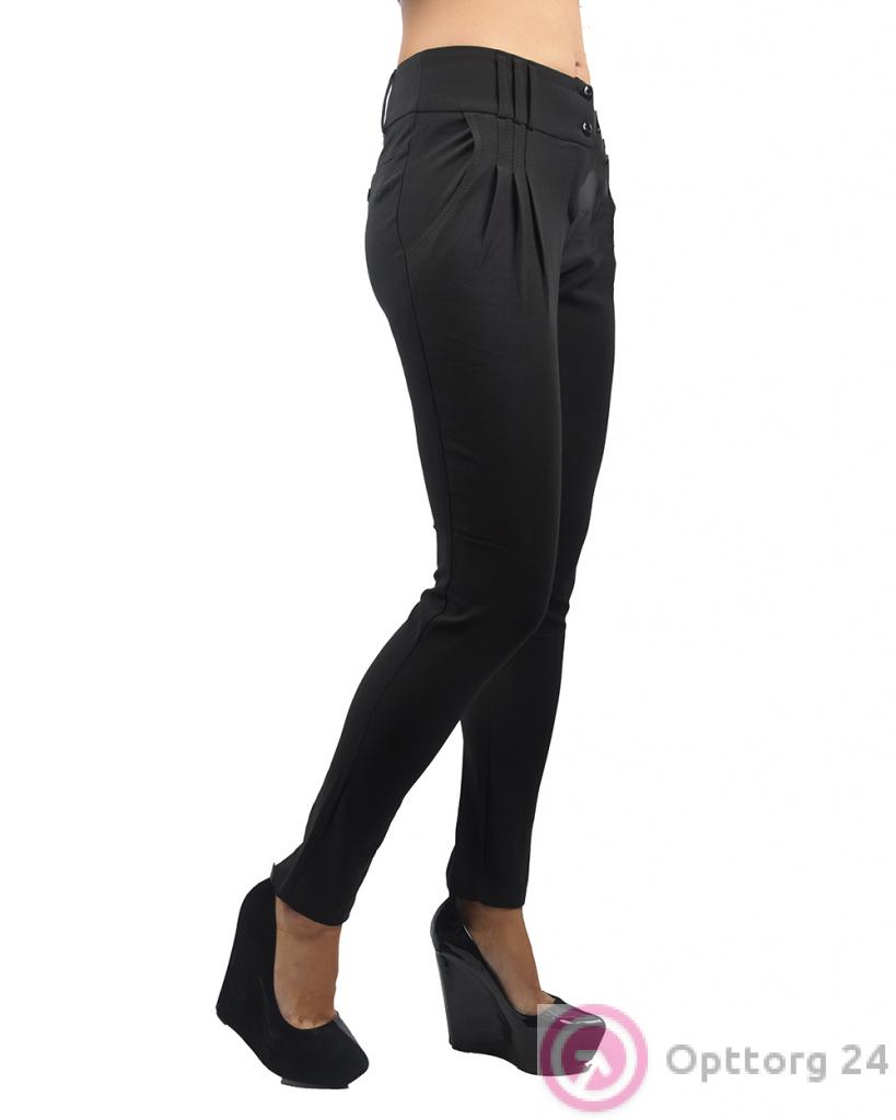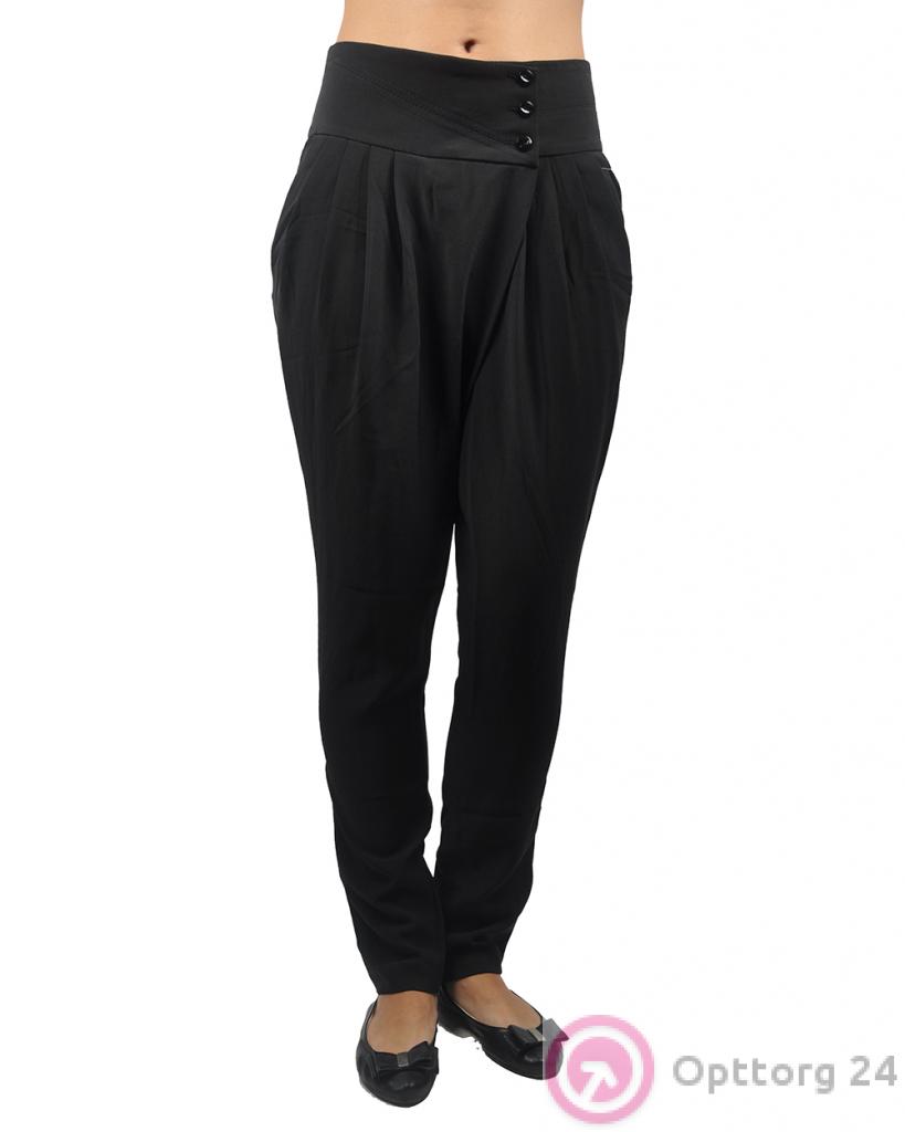 Брюки женские черные с защипами зауженные к низу оптом