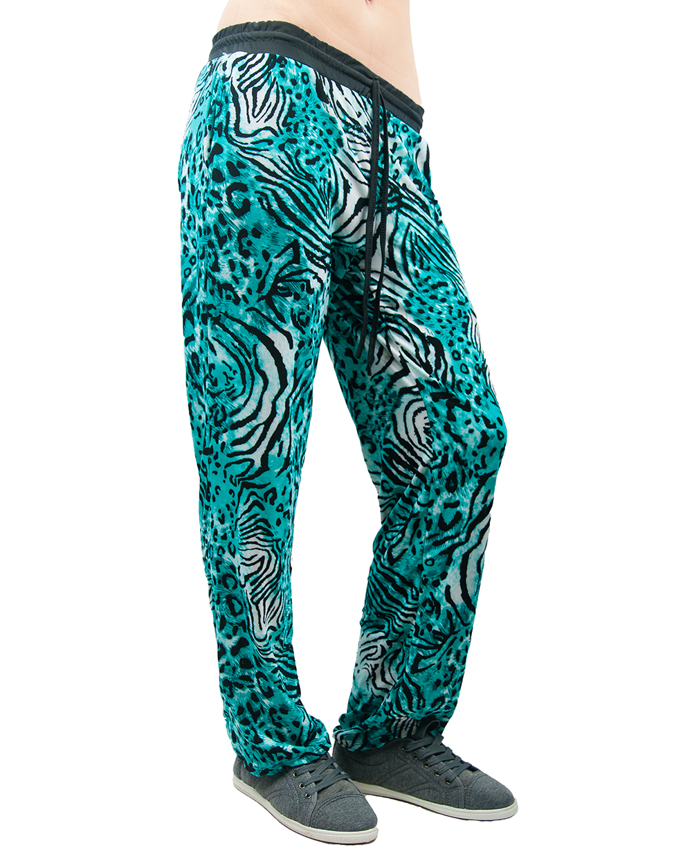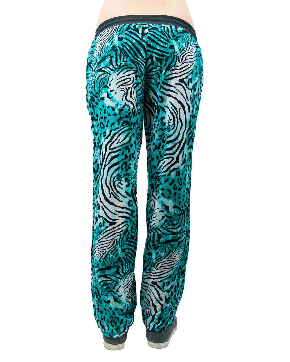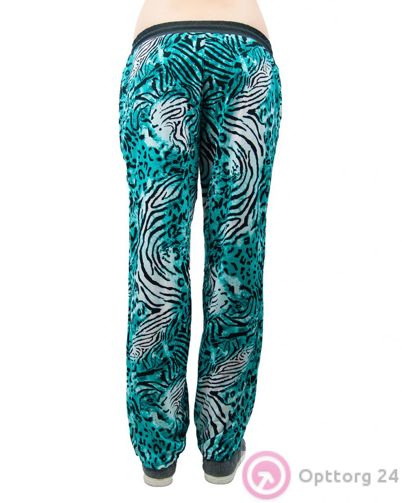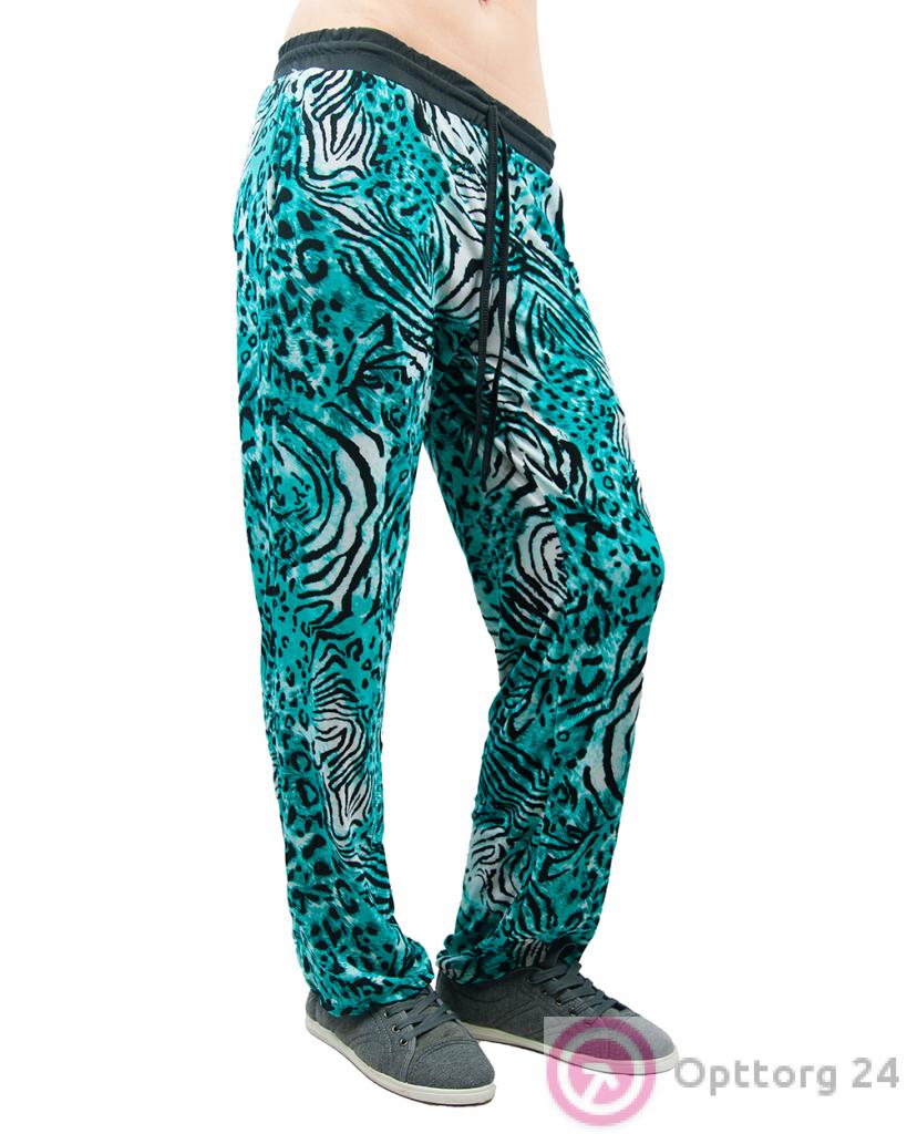 Брюки женские летние бирюзовые с тигриным принтом оптом