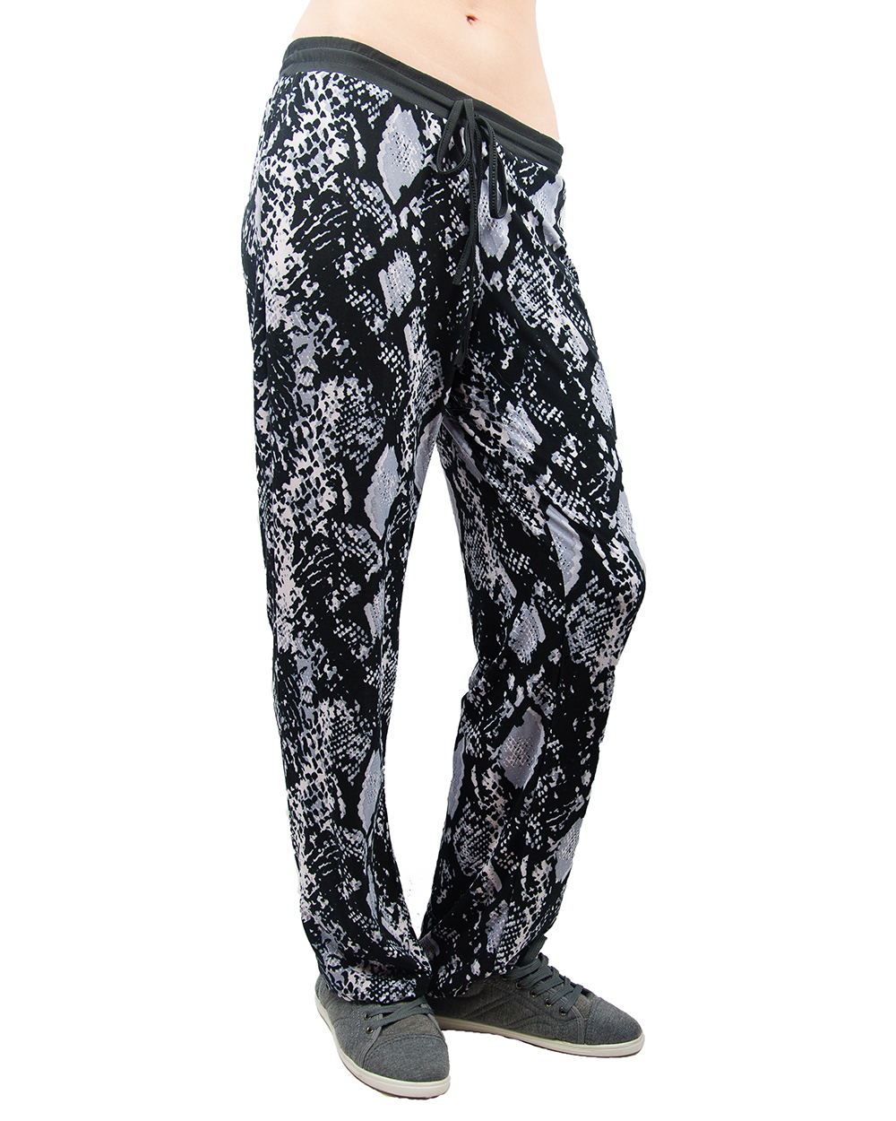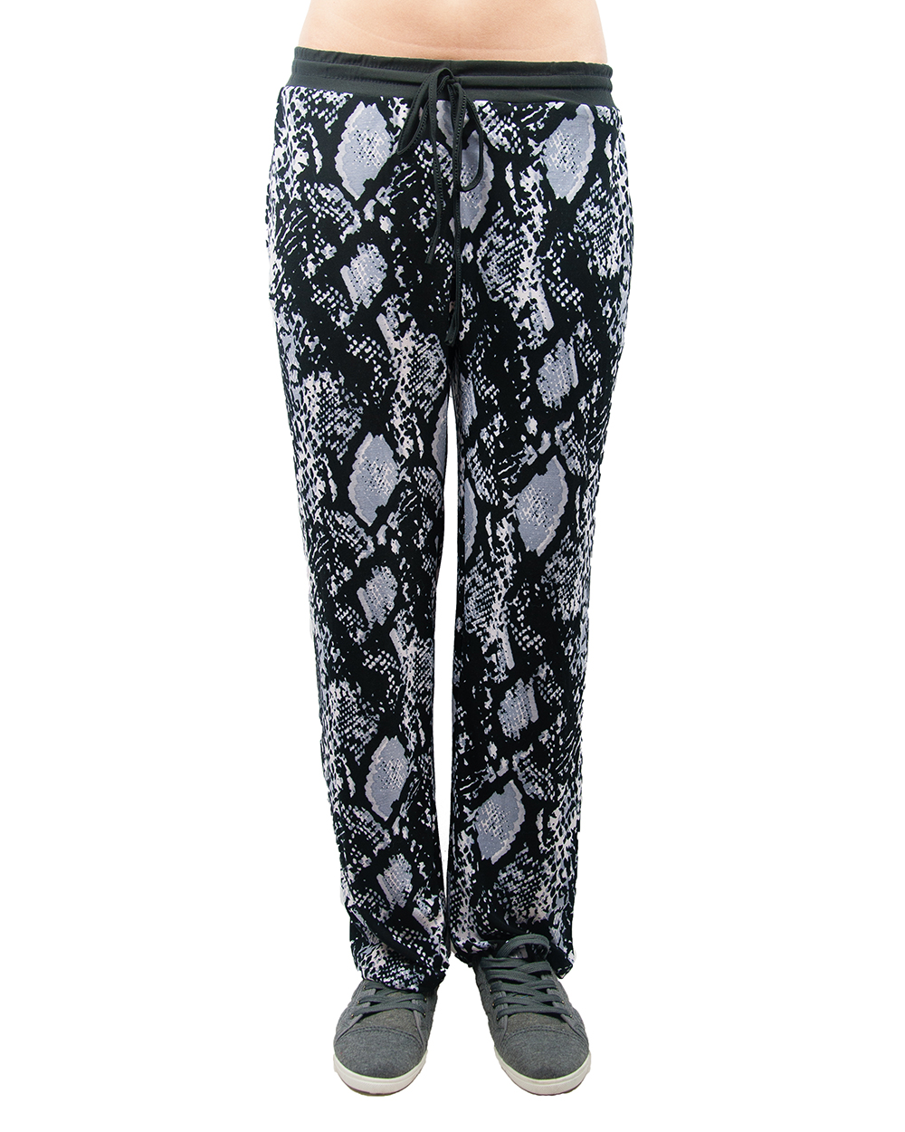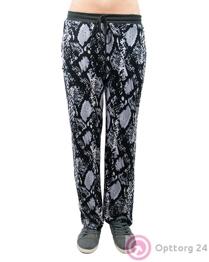 Брюки женские летние черно-серы с принтом под кожу рептилии оптом
