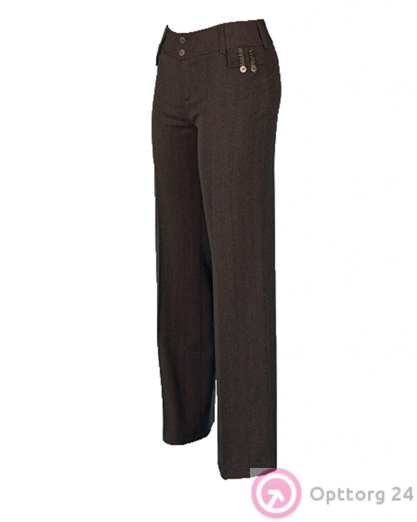 Тёмно-коричневые женские брюки с декоративными кнопками на карманах