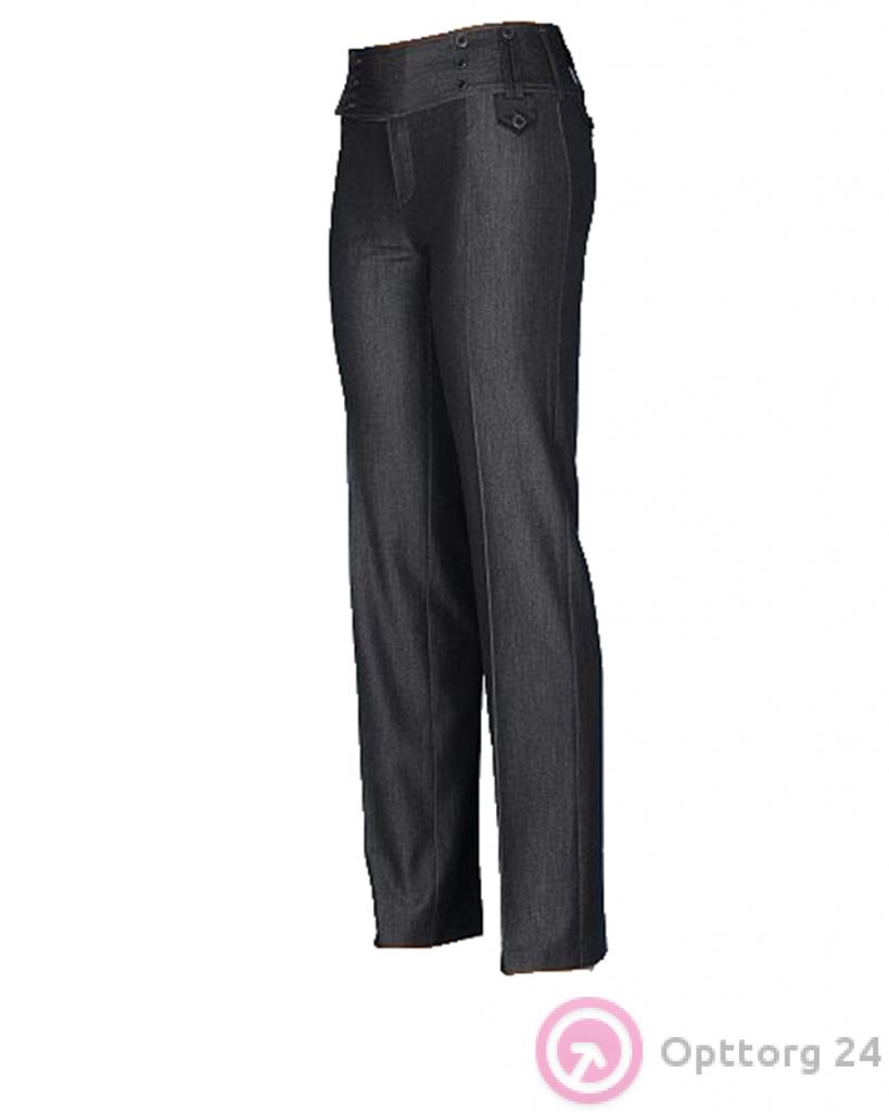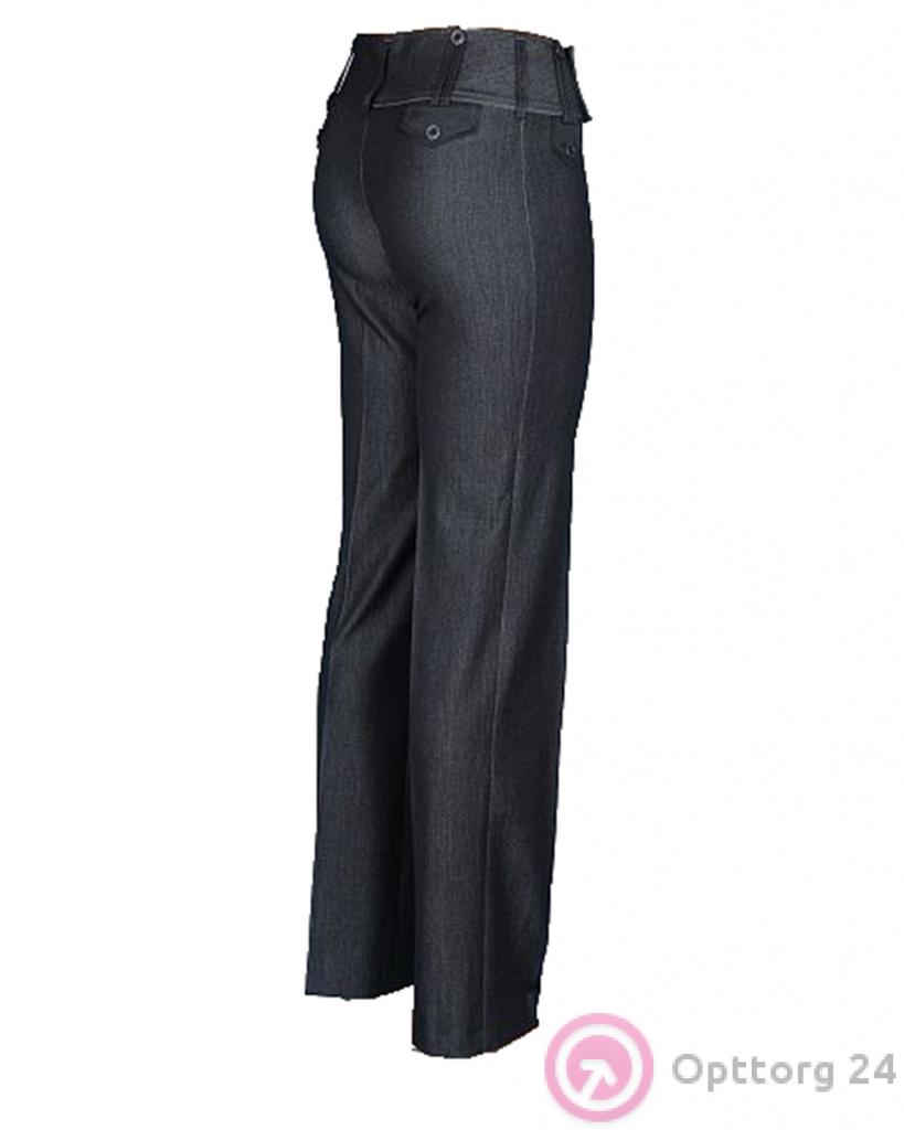 Брюки женские с двойными шлёвками и декоративными пуговицами тёмно-серые оптом