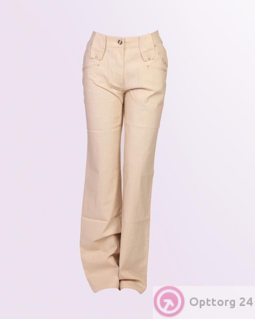 Брюки женские льняные с широкими шлевками на пуговицах.
