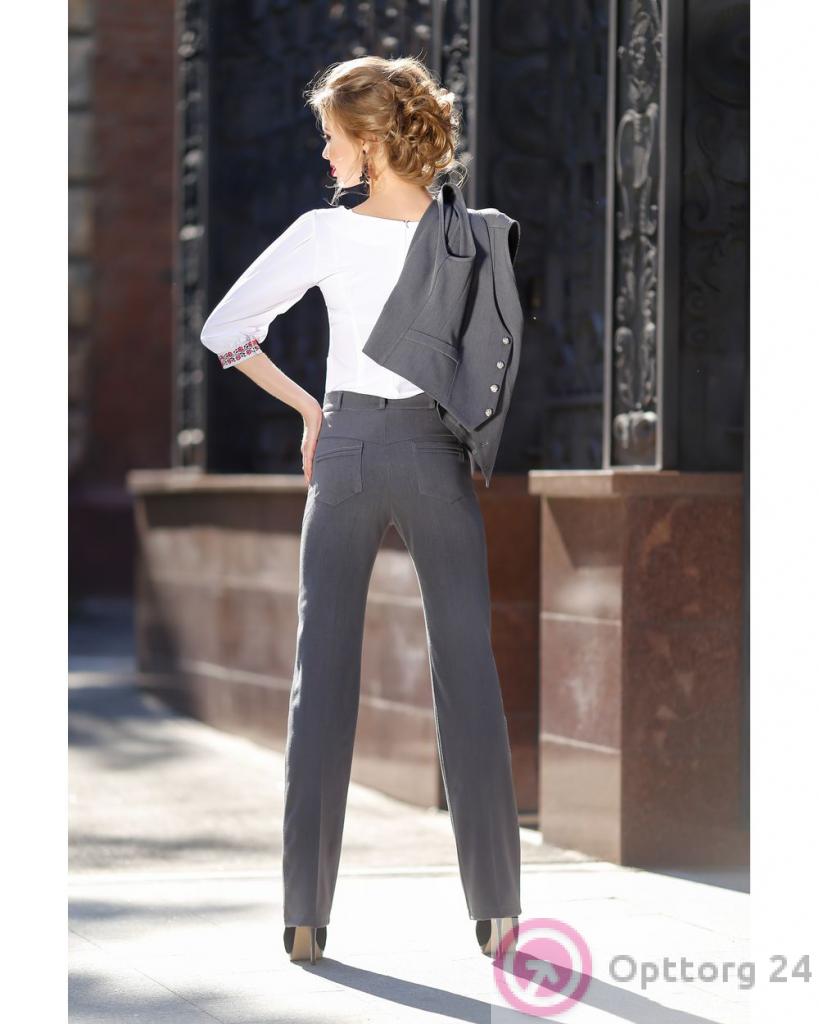 Брюки женские с завышенной талией серые оптом