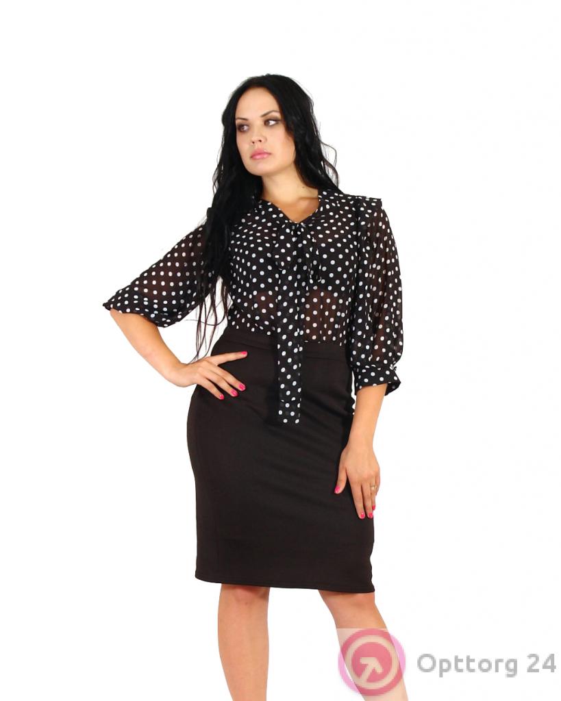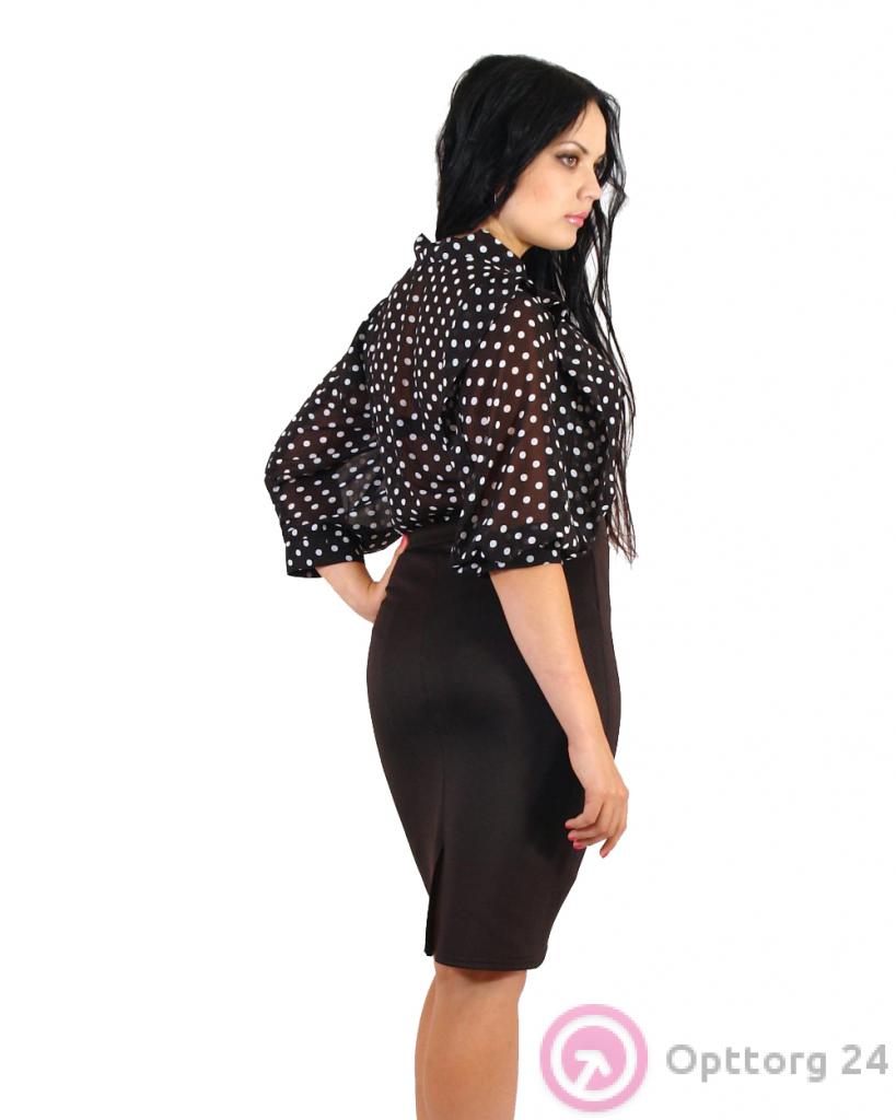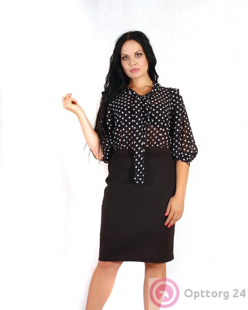 Черное в белый горох шифоновое платье с рукавом три четверти оптом