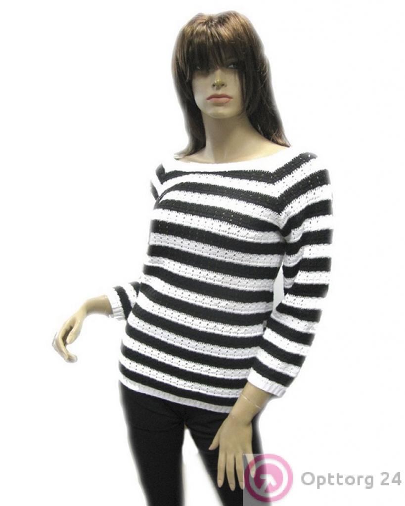 Белый, молодёжный джемпер в черную, горизонтальную полоску с длинным рукавом. Джемпер отлично сочитается с джинсами, юбками и брюками.