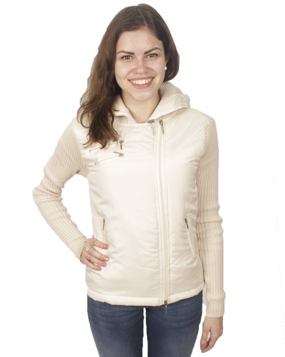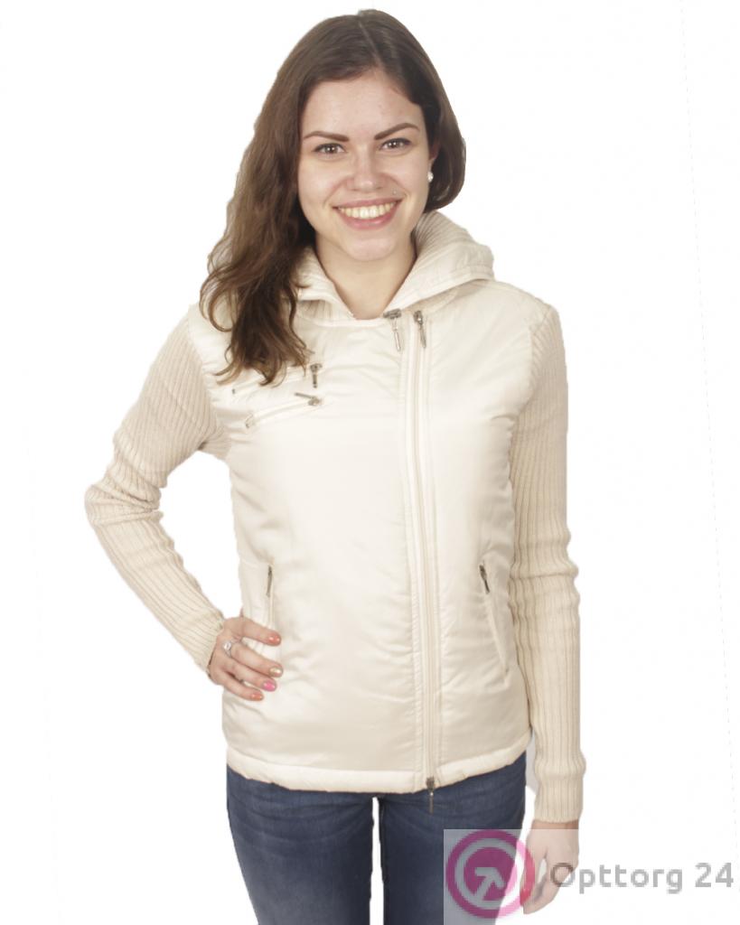 Женская куртка-джемпер однотонного цвета с длинным, вязаным рукавом на молнии.