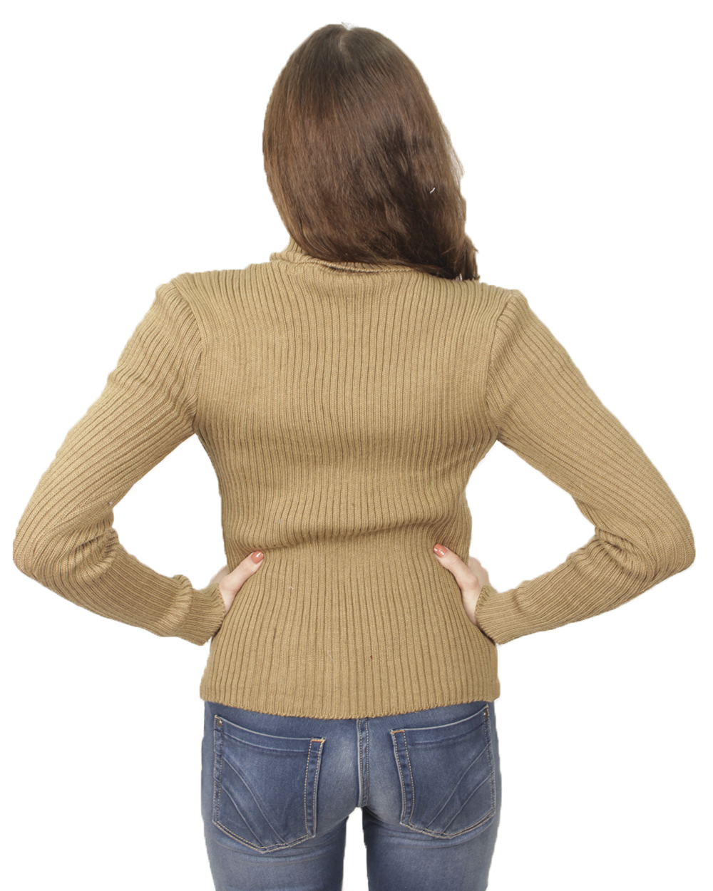 Джемпер - куртка коричневого цвета с длинным воротом оптом