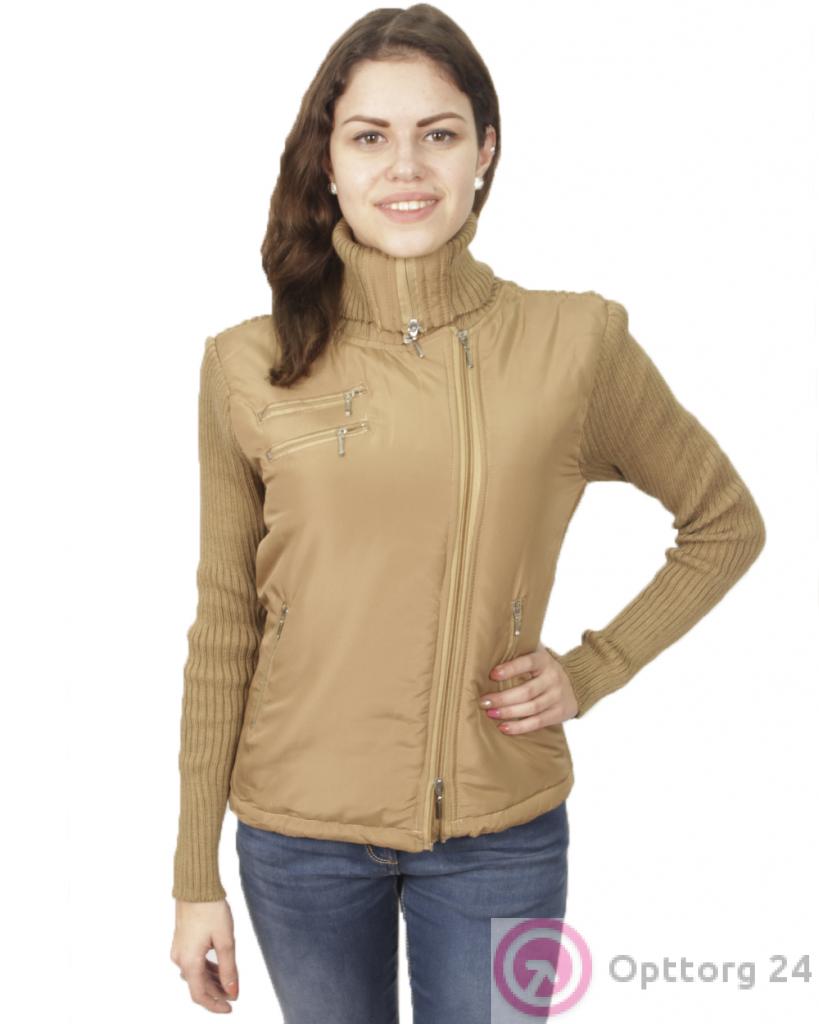 Женский джемпер - куртка коричневого цвета на молнии, модель имеет длинный вязаный рукав .