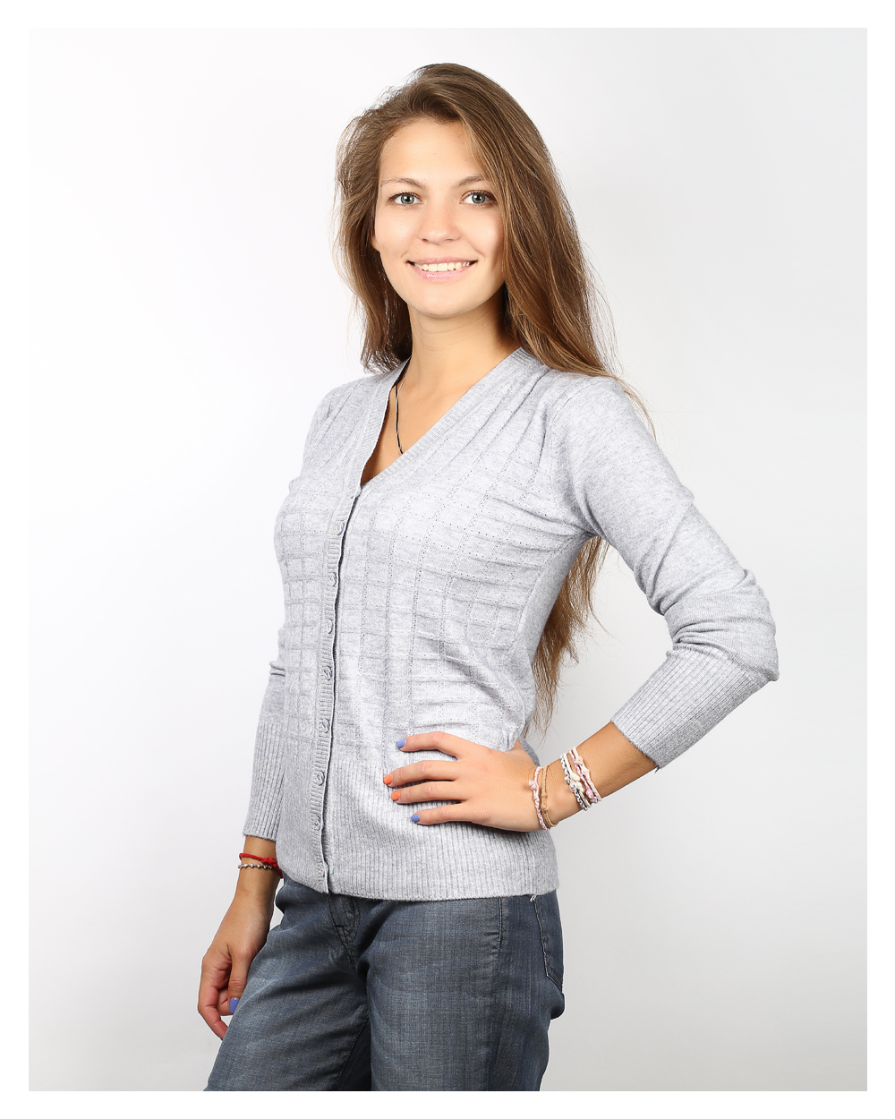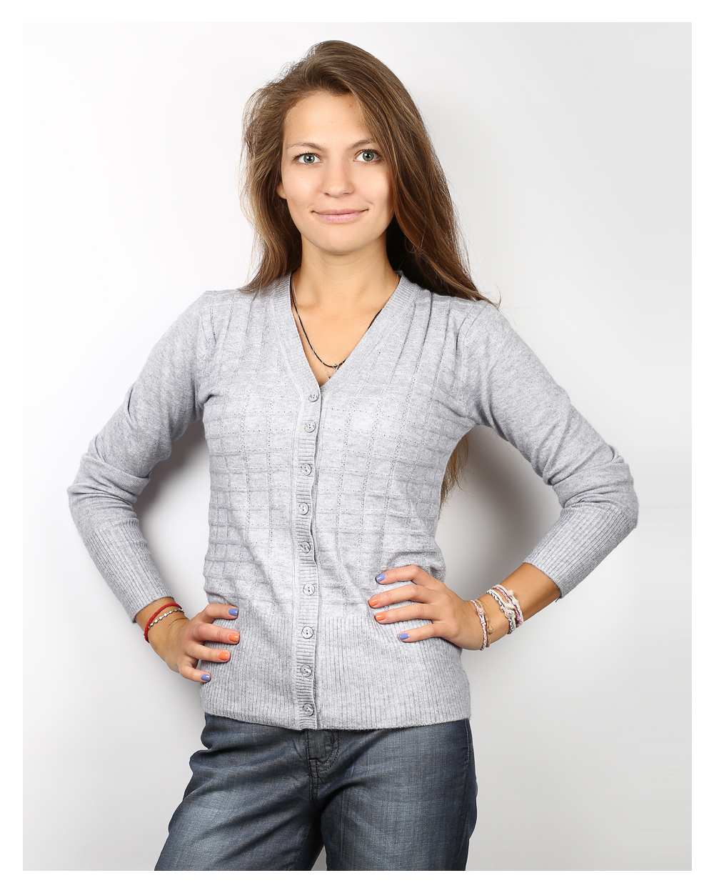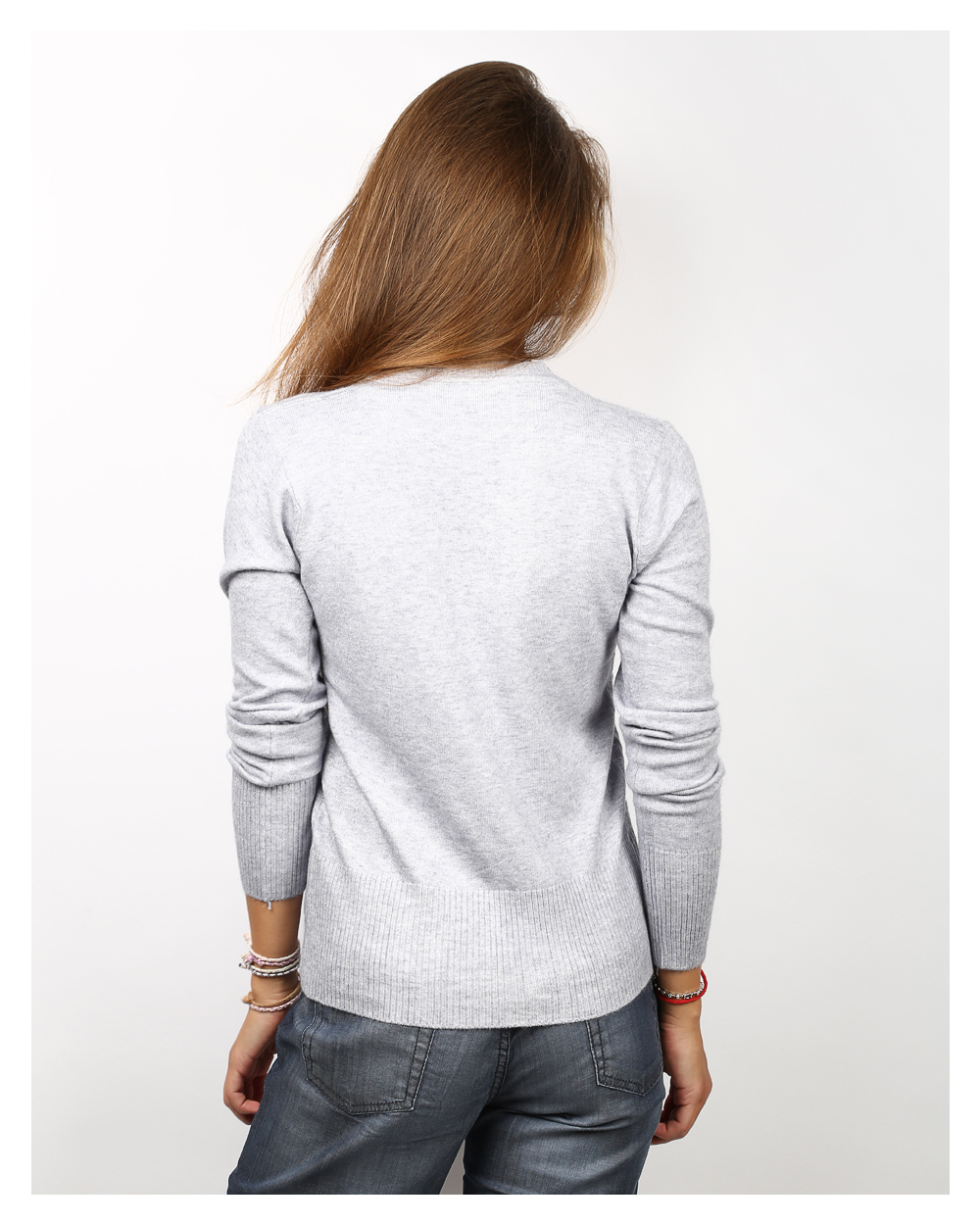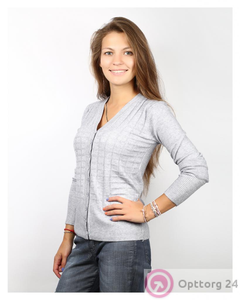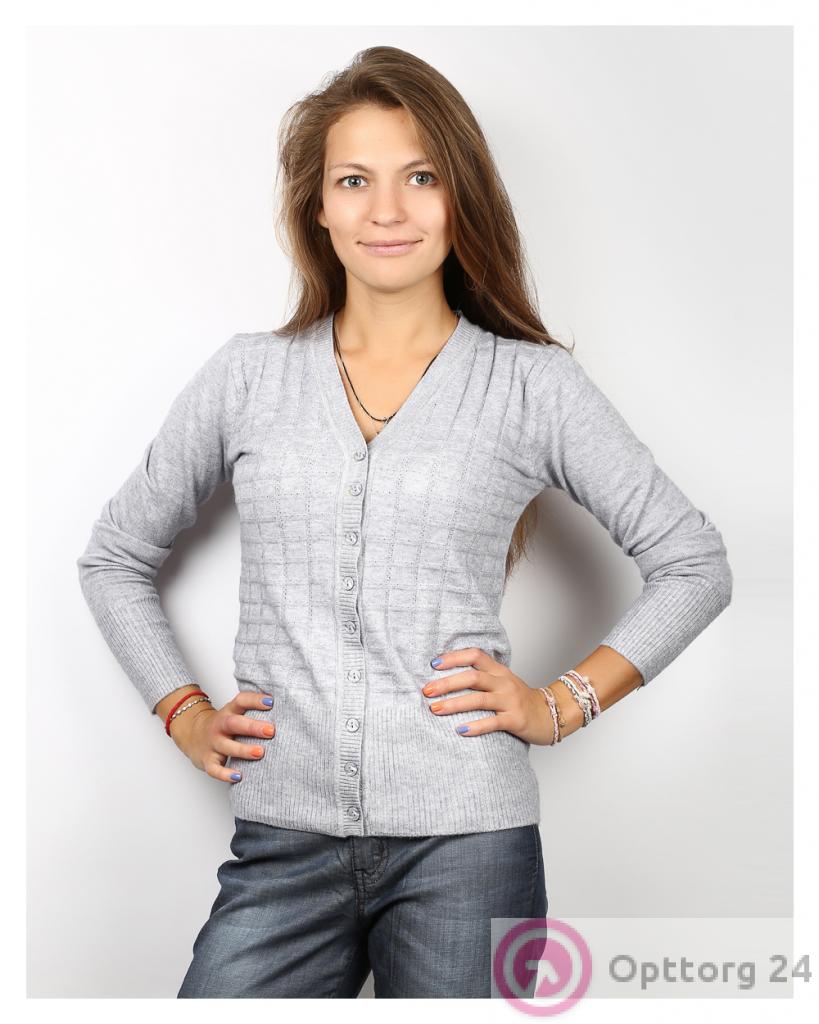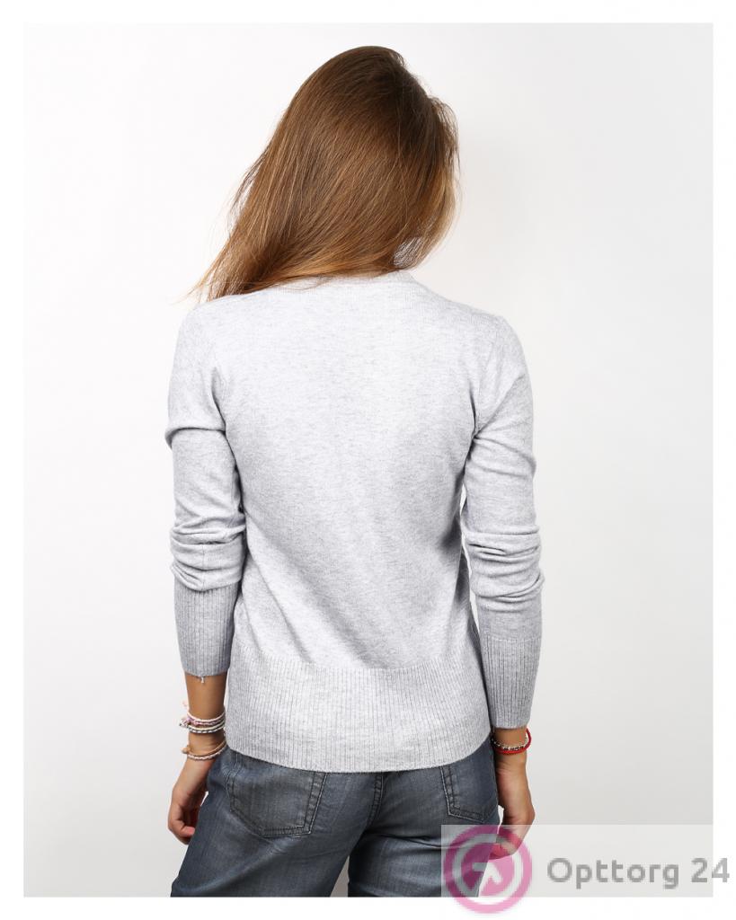 Джемпер трикотажный с V-образным вырезом серый оптом