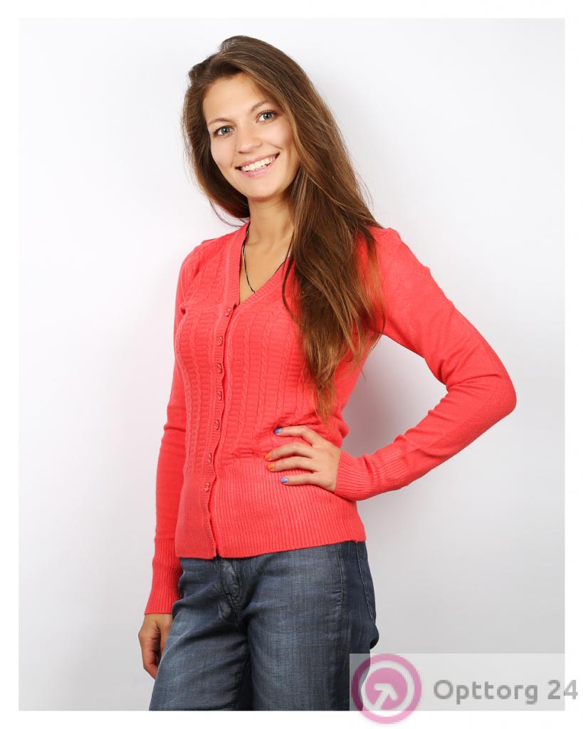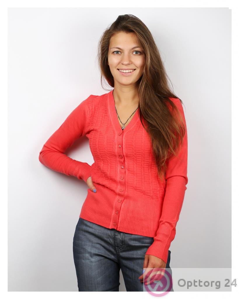 Джемпер трикотажный V-образный вырез на пуговицах алый оптом