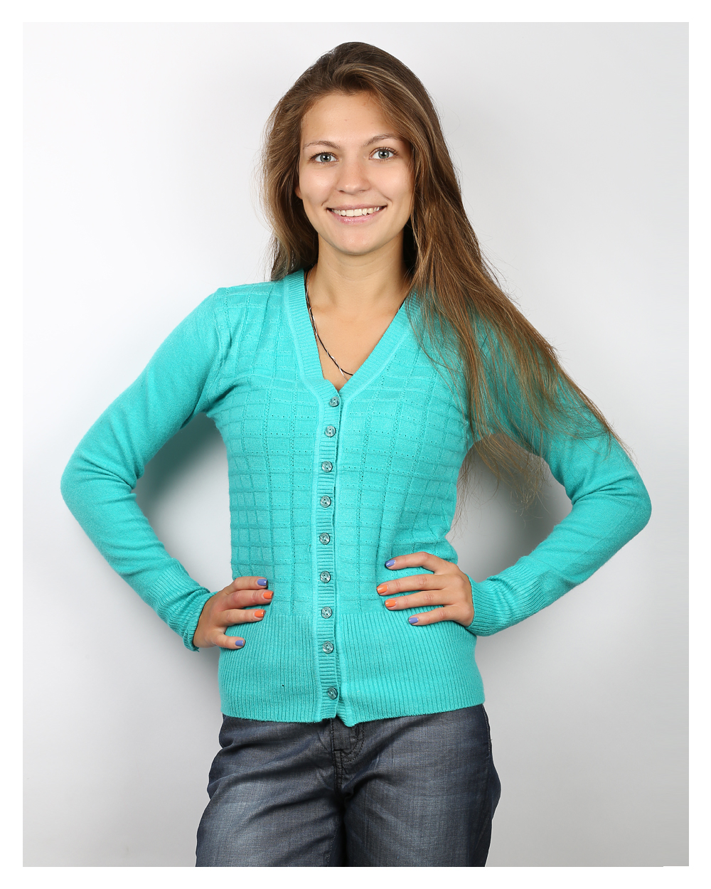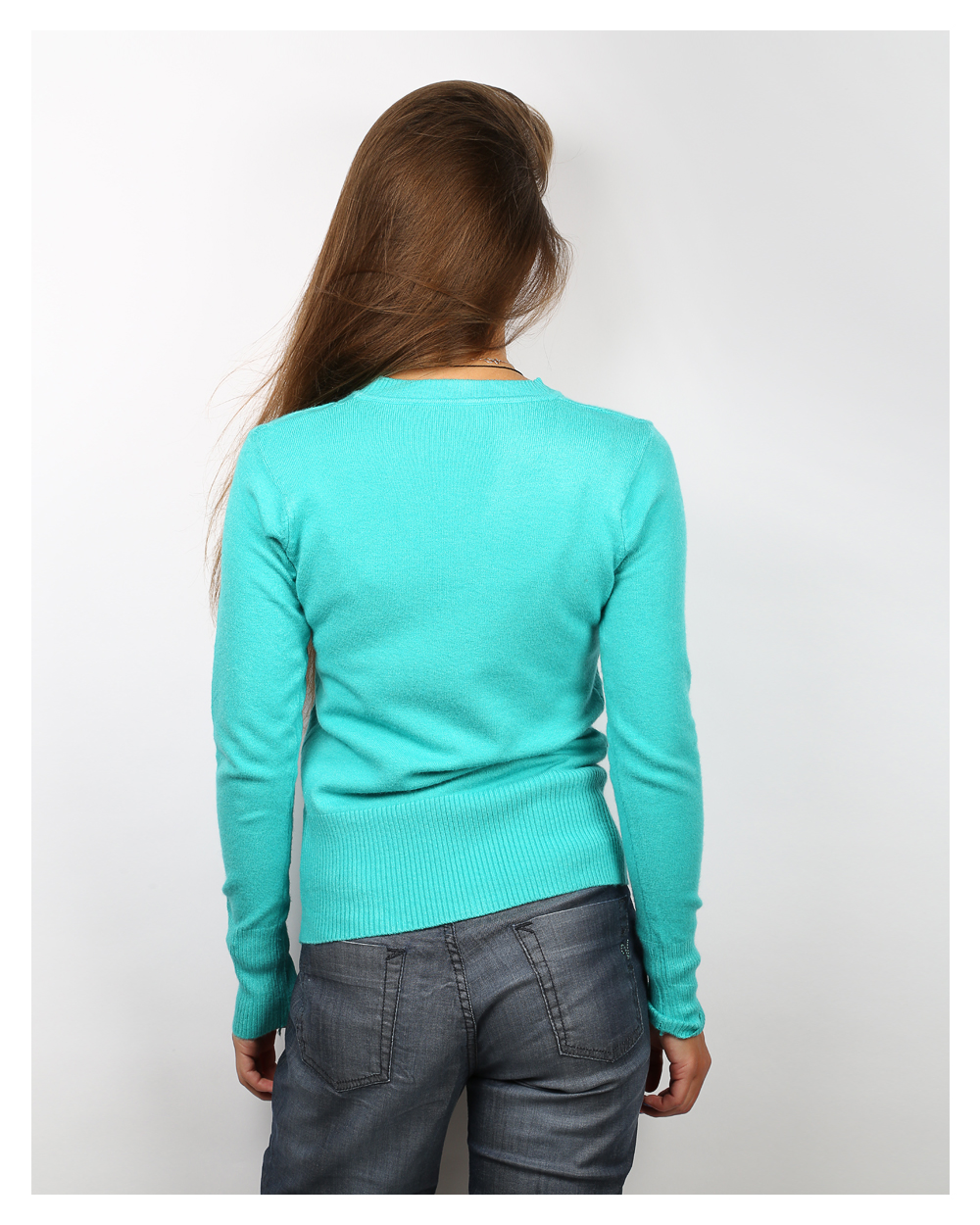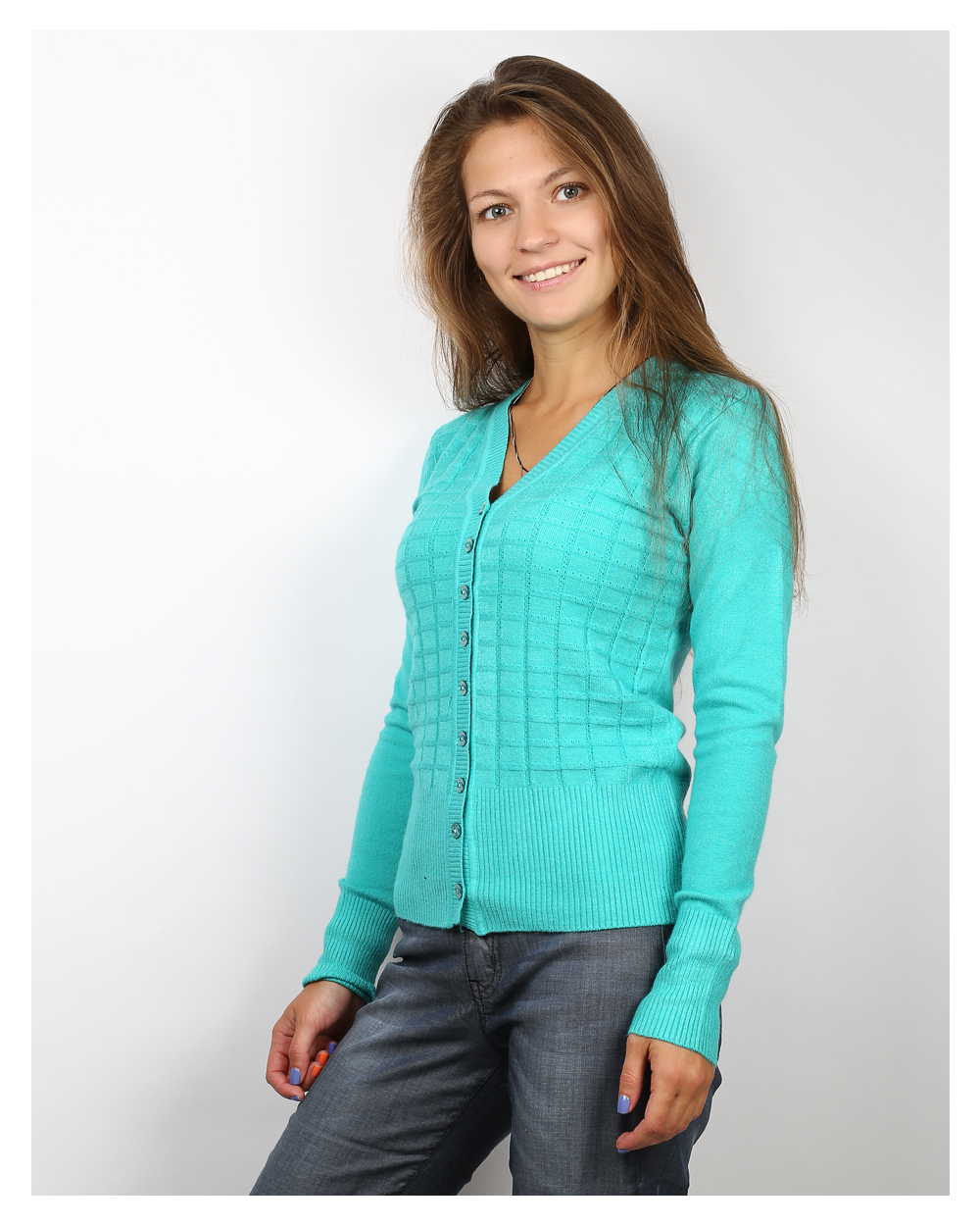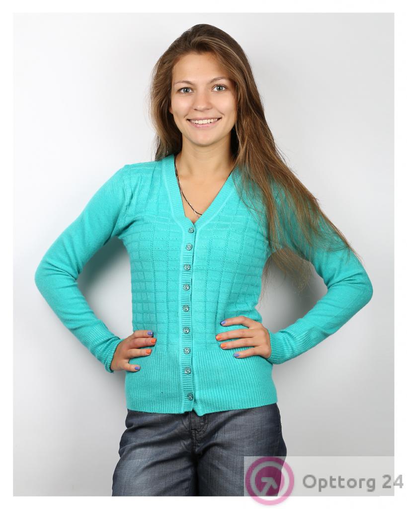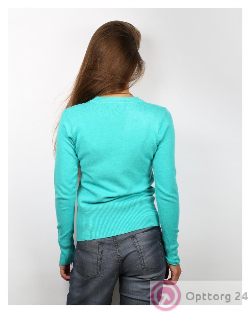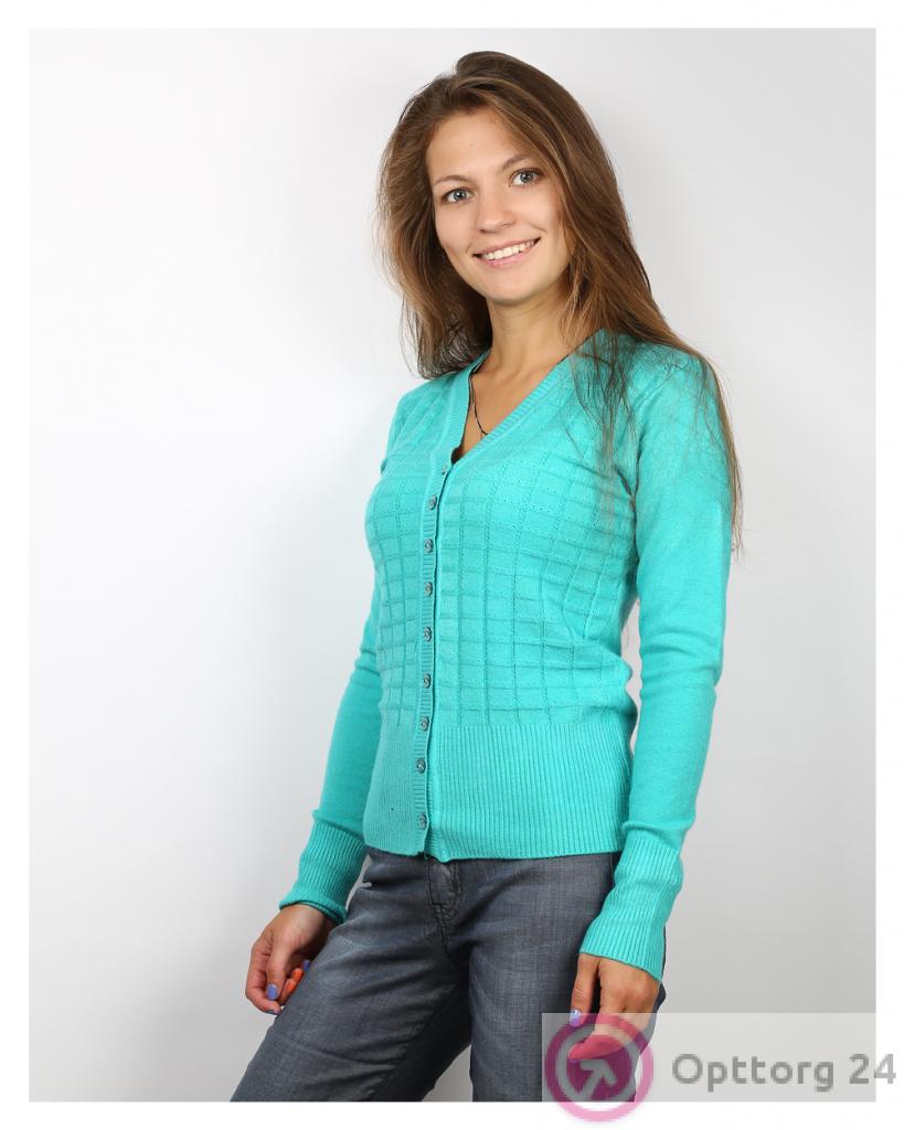 Джемпер трикотажный V-образный вырез узор квадратами бирюзовый оптом