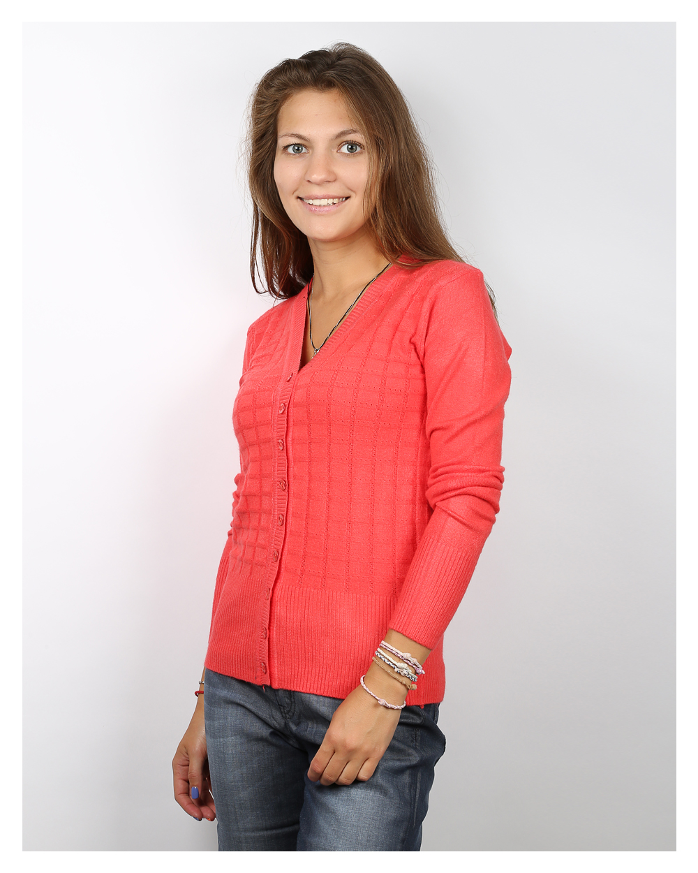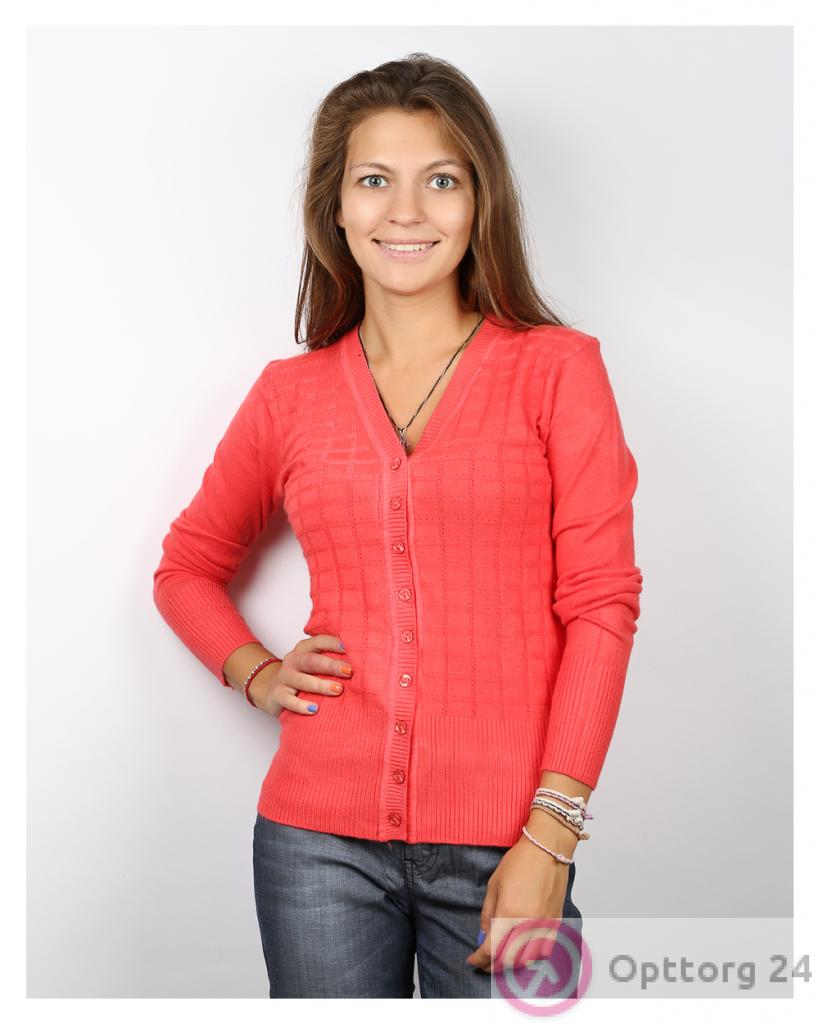 Джемпер трикотажный V-образный вырез узор квадратами коралловый оптом
