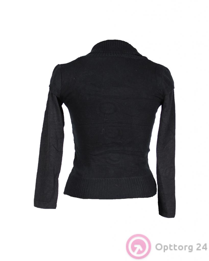 Джемпер женскаий с воротом-хомутом и большими пуговицами чёрный оптом