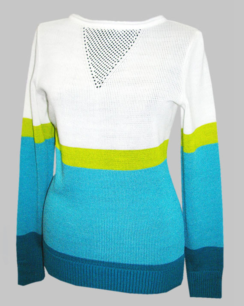 Джемпер женский бело-голубой с зеленой полосой оптом