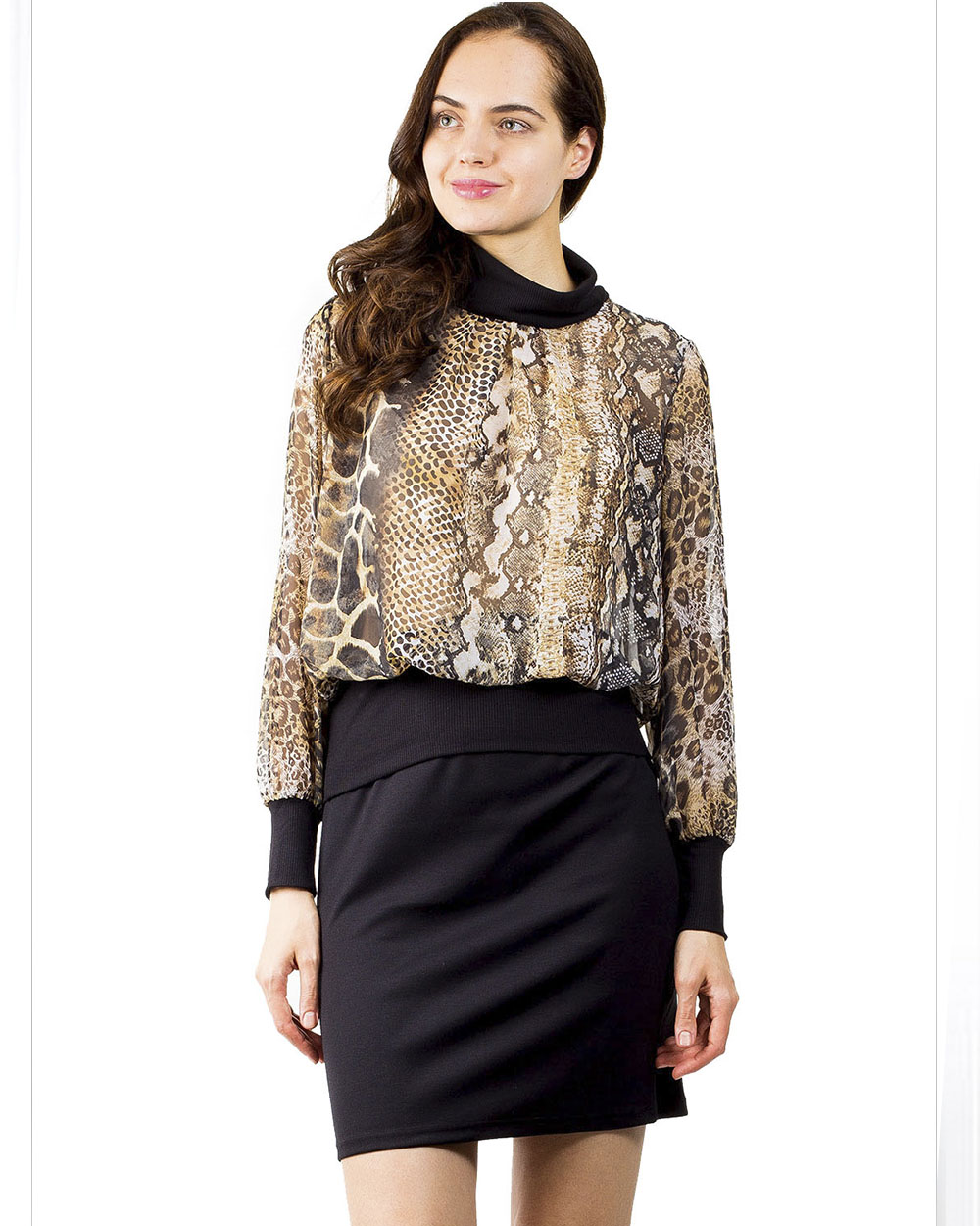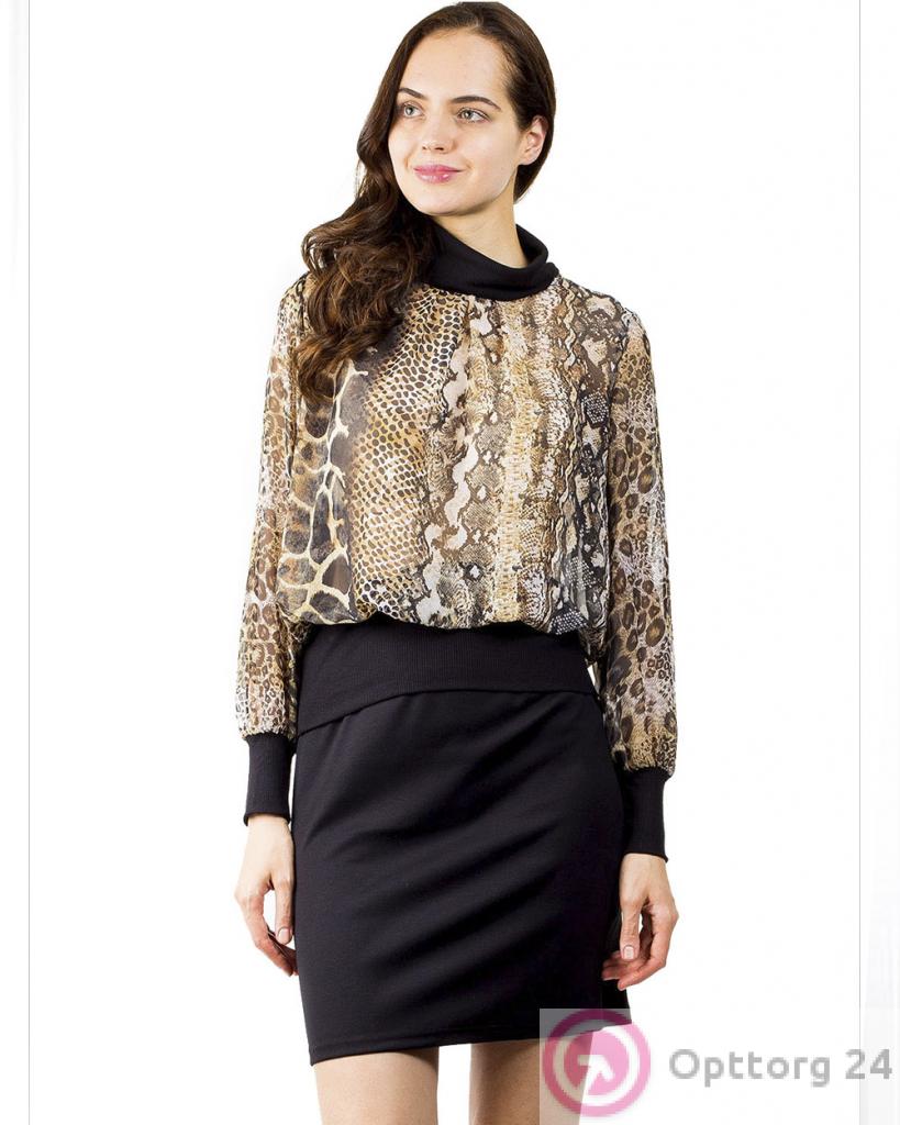 Женский джемпер с длинным рукавом. Интересный расскрас в стиле симбиоза кожи змеи и леопарда.
