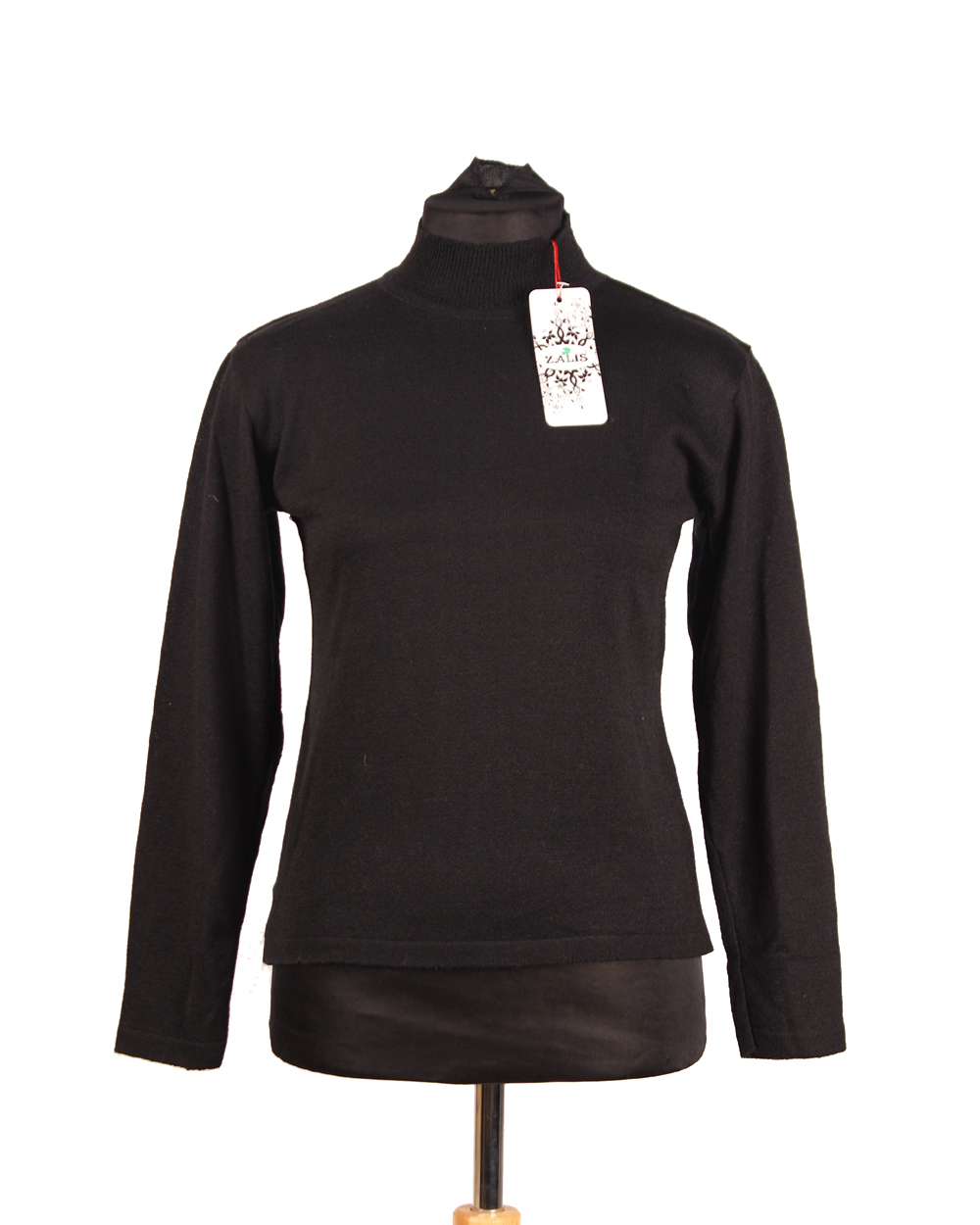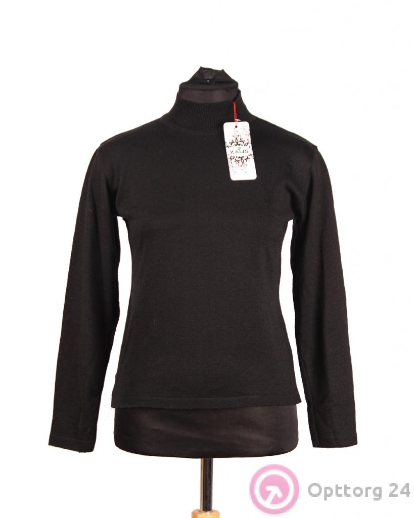 Универсальный женский вязаный джемпер с воротником-стойкой и длинными рукавами. Рукава на манжетах. Низ и горловина на резинке. Машинная вязка.