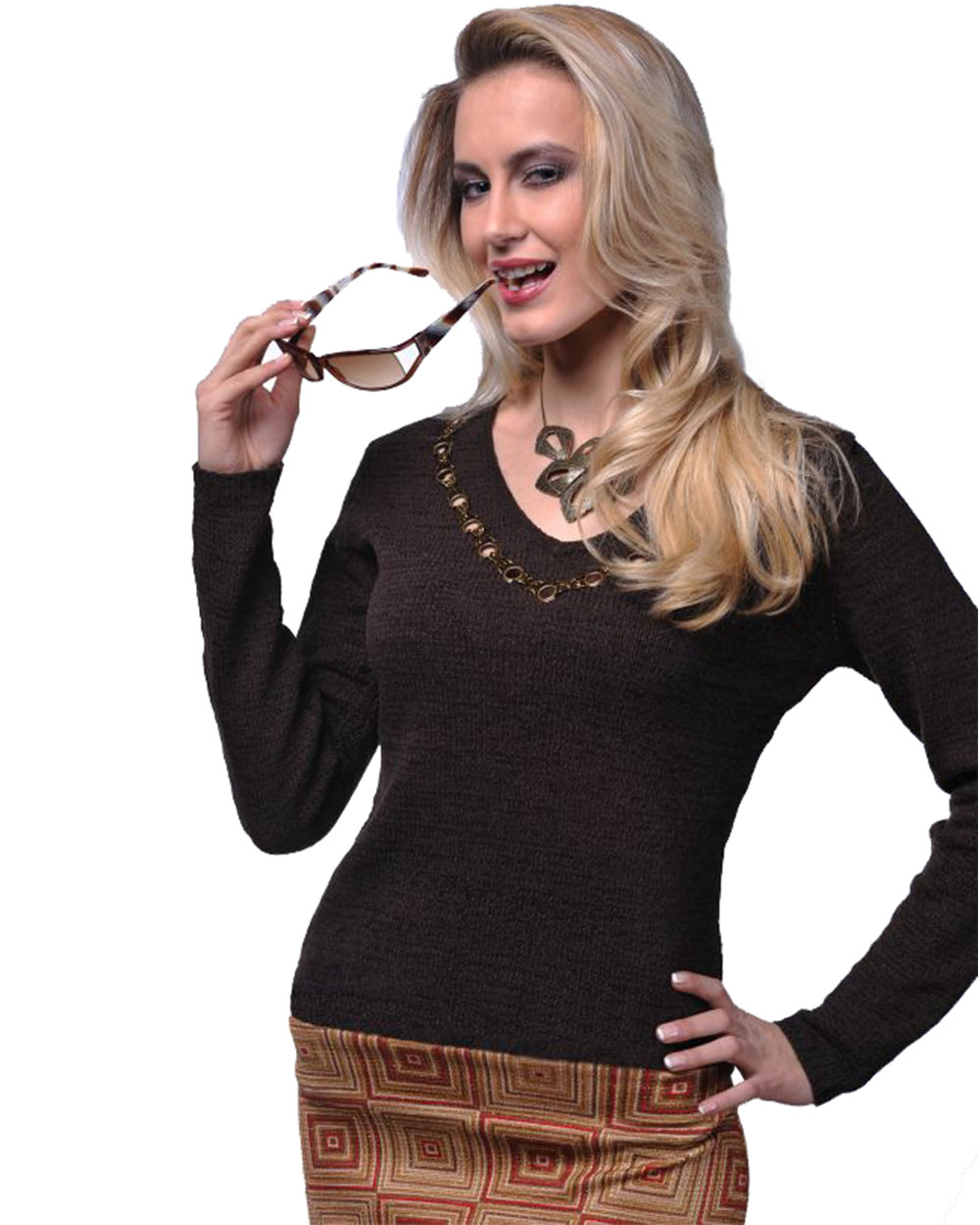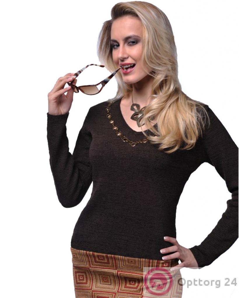 Джемпер женский черного цвета с V-образным вырезом и декором оптом