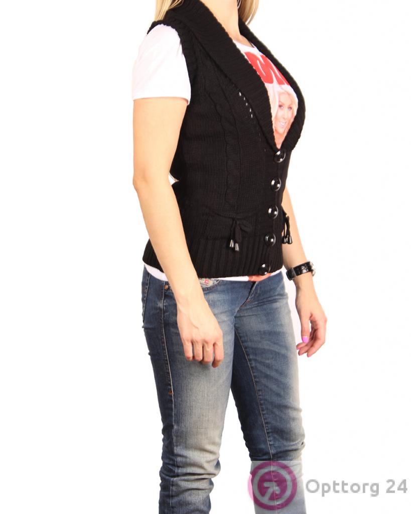 Джемпер женский черный без рукавов на пуговицах оптом